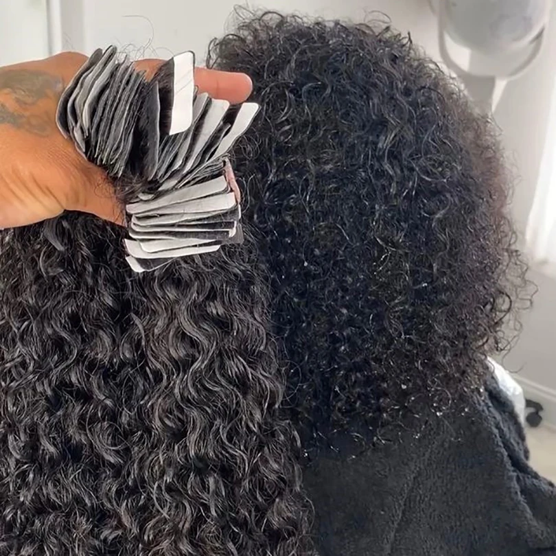 Лента для наращивания человеческих волос, кудрявые прямые волосы 40...