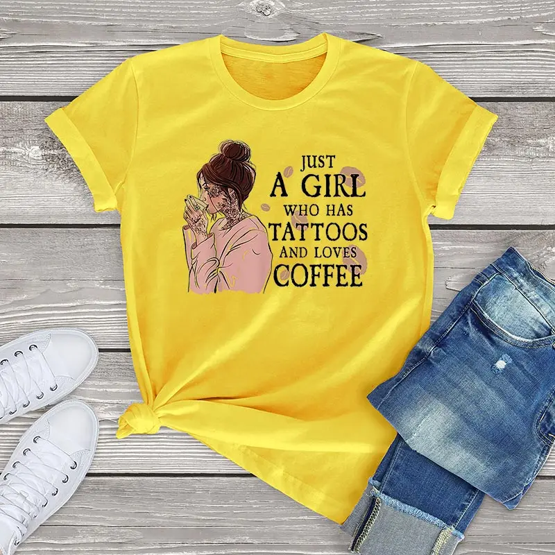 Футболка с надписью «Just a Girl Who Has Tattoos Loves Coffee book» из хлопка kawaii, женская футболка унисекс, топы, блузки с графикой, женская рубашка, модная одежда для девочек, лето 2021