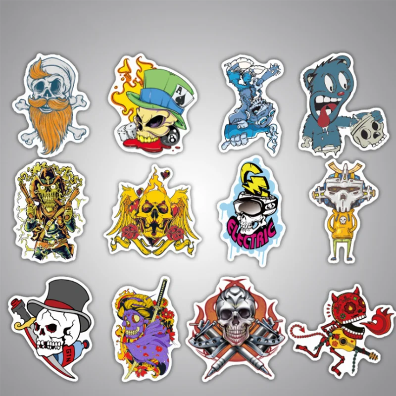 103050 шт Череп ужас в готическом стиле, для мальчиков, в стиле хип-хоп Стикеры Чемодан тележка с мультипликационным принтом в виде граффити, Стикеры игрушки оптом