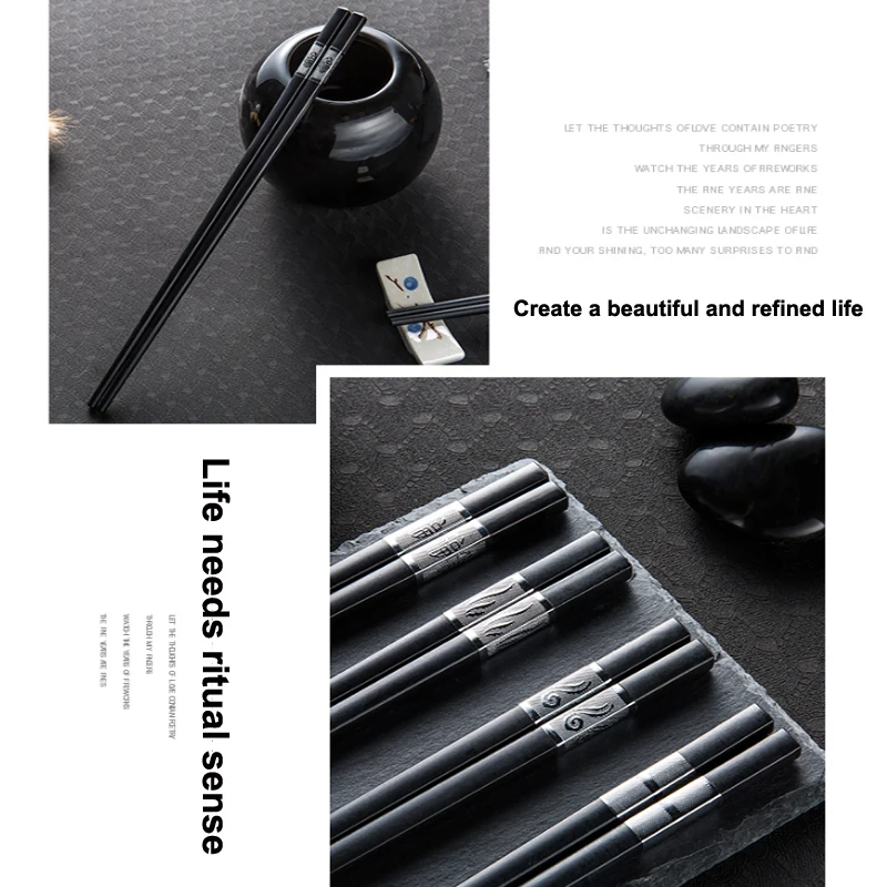 12 пары палочек для еды в китайском стиле, сплав, палочки для еды, ...