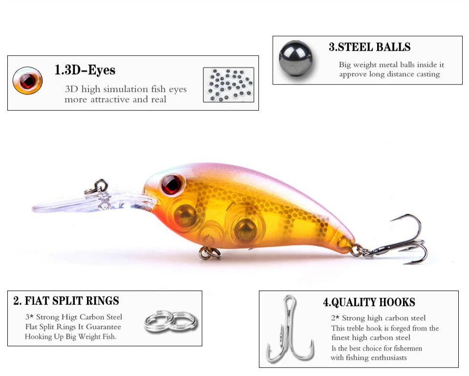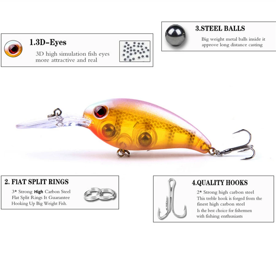 Искусственный кренкбейт с 3d-глазами, приманка для рыбной ловли, 6 # Высокоуглеродистая сталь, черный никель, тройной крючок, воблеры для рыбы, рыба, приманка для карпа