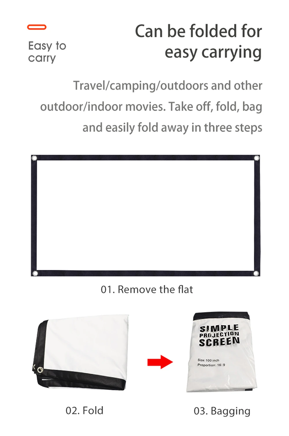Проекционный экран MIXITO, складной, высокой плотности, складной, не мнется, 84, 92, 100, 120, 150 дюймов, для домашнего кинотеатра