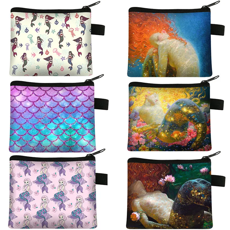 Красивый кошелек для монет с русалкой, модная сумка для монет для девочек, 3D принт, кошелек для кредитных карт принцессы русалки