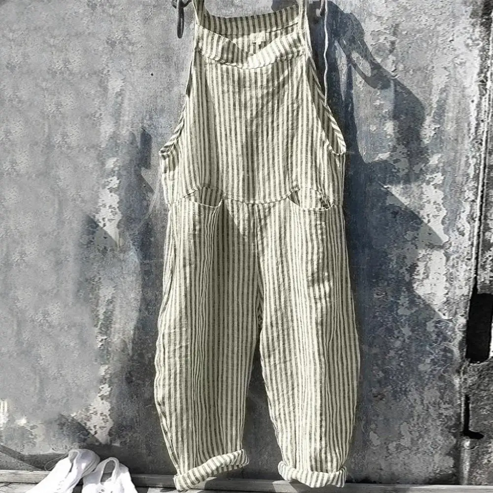 Женский Повседневный комбинезон в Вертикальную Полоску, комбинезон без рукавов с карманами, комбинезон