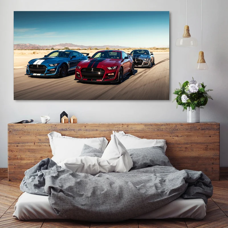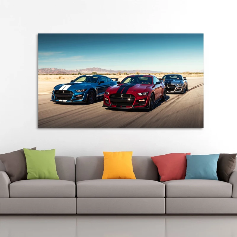 Суперкар, Форд Мустанг, Шелби GT500, гоночный автомобиль Транспортное средство, постеры на стену, принты картины на холсте для декора гостиной