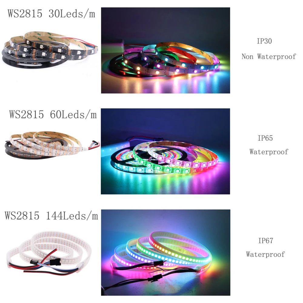Улучшенная смарт-светодиодная лента WS2813(5 В) WS2815(12 В) WS2812B RGB 3060144 светодиодовметр, индивидуальное управление двойным сигналом