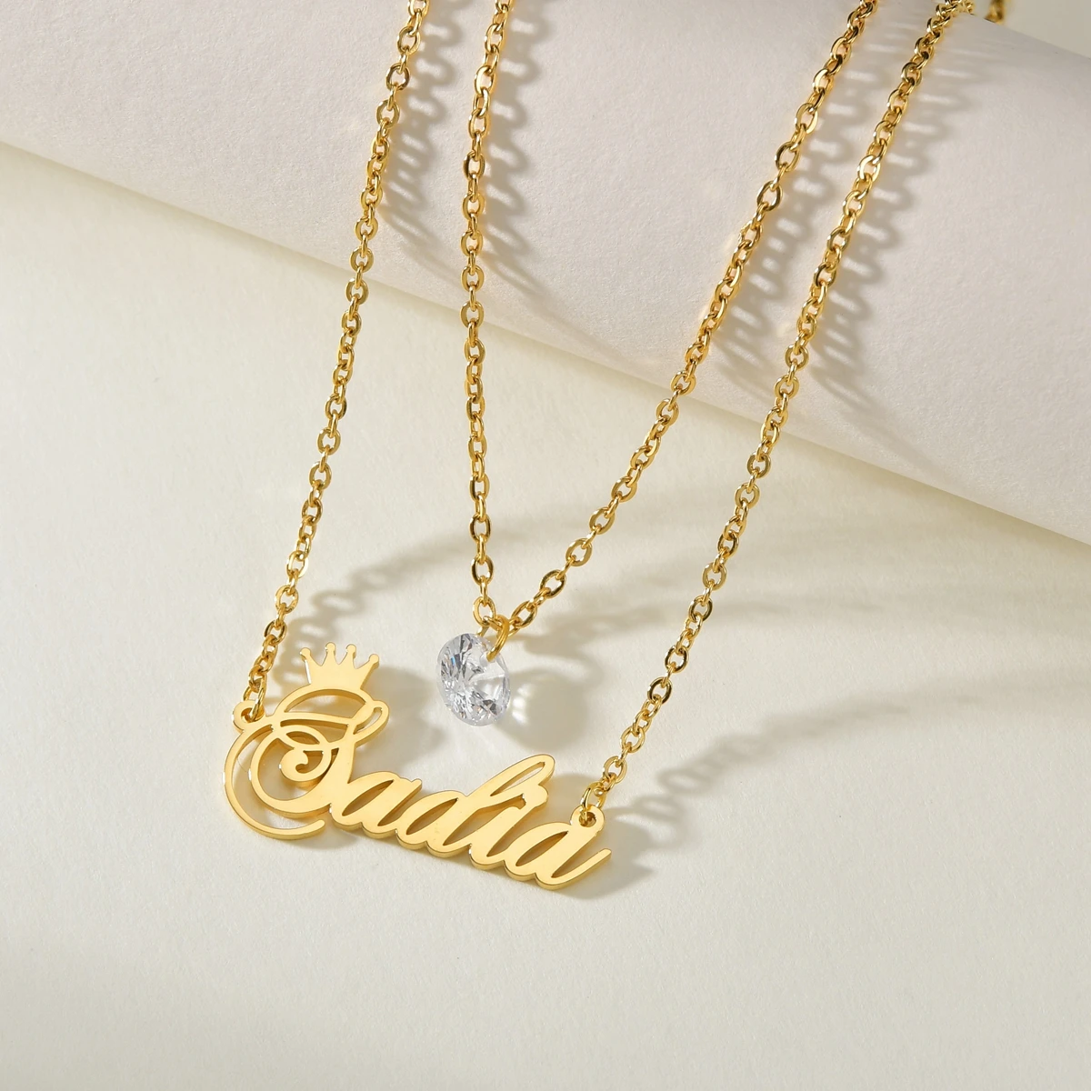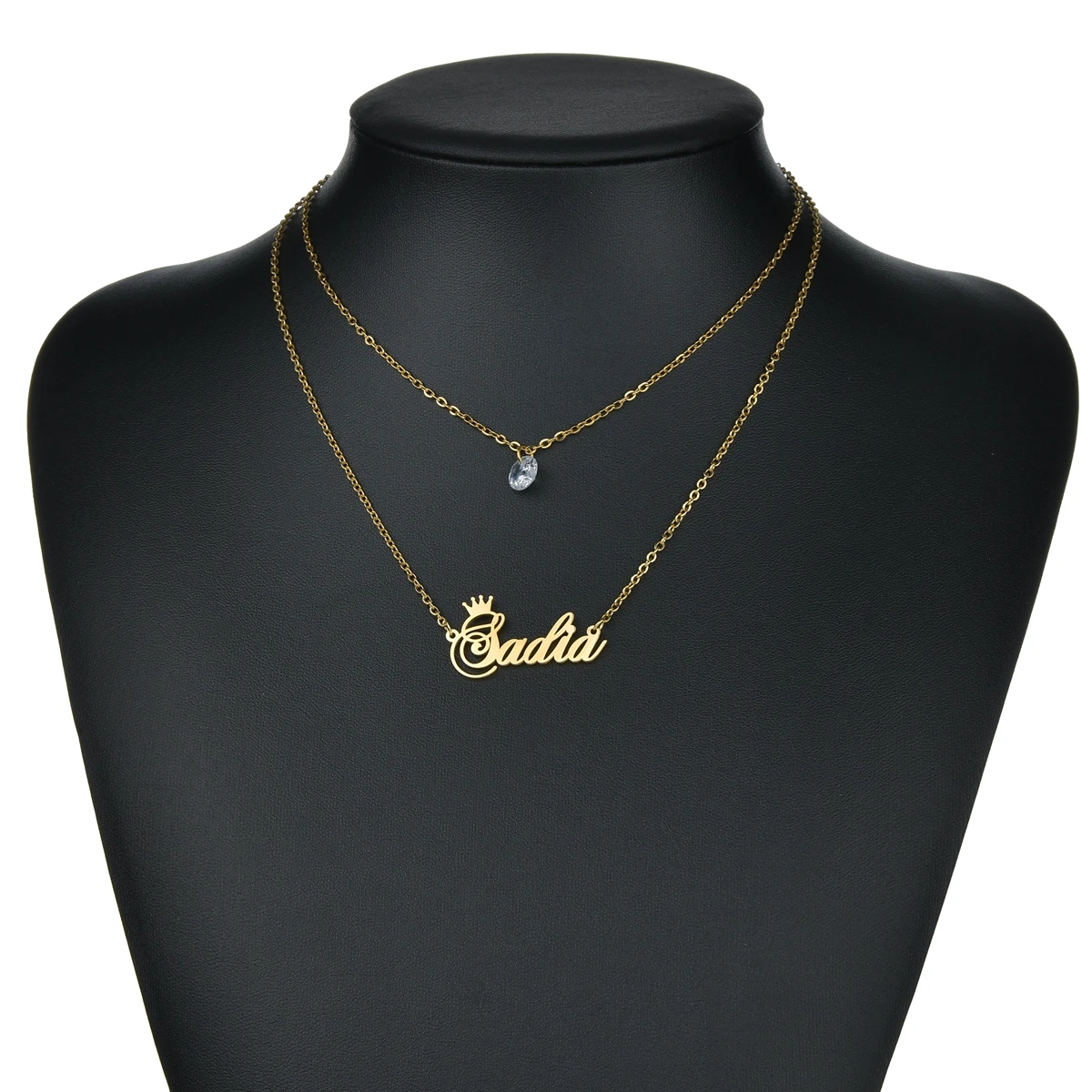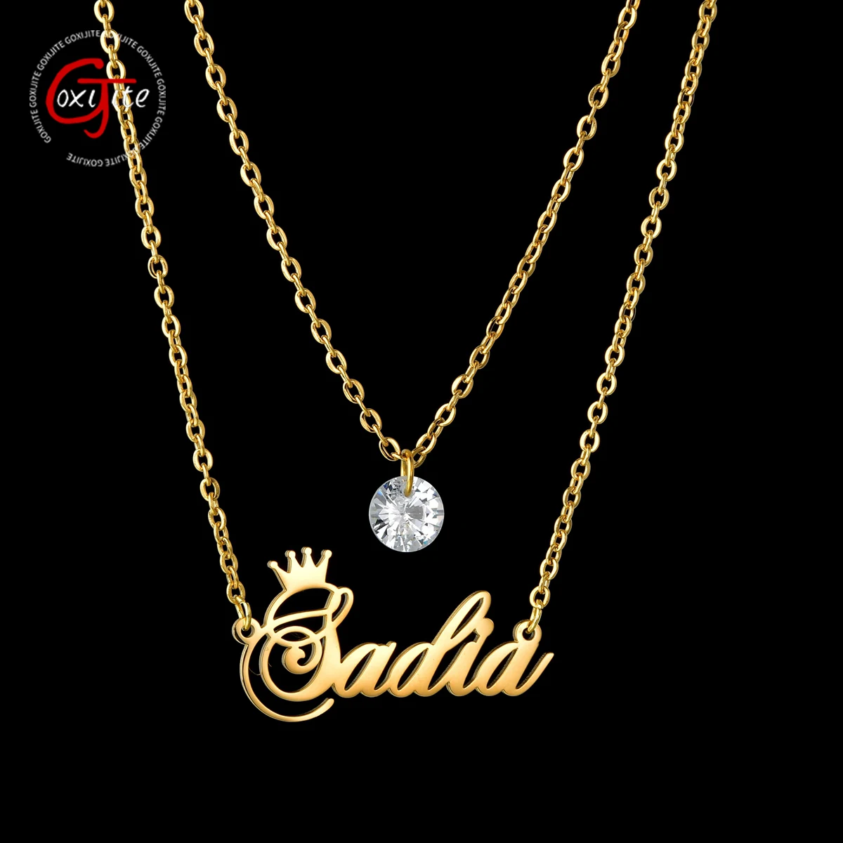 Двухслойное ожерелье Goxijite с камнем для женщин, ожерелье с короной и надписью-инициалом имени в арабском стиле, бижутерия