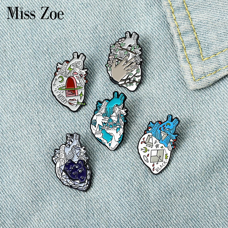 Анатомические эмалированные булавки в виде человеческого сердца, му...