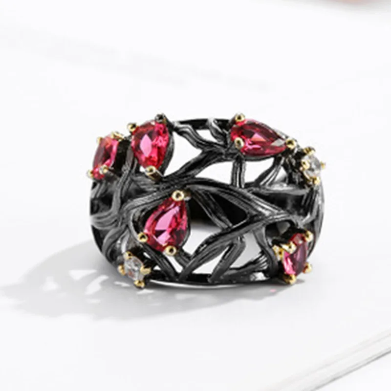Модное креативное женское кольцо черного и золотого цвета в европейском и американском стиле в форме капли воды и груши с полым кристаллом для женщин