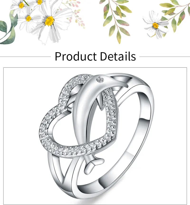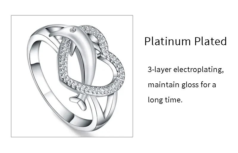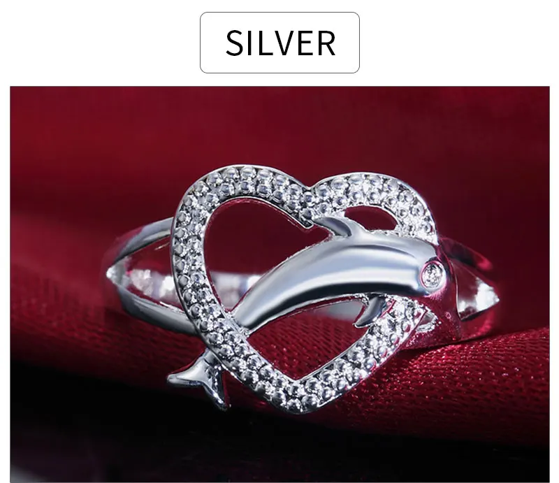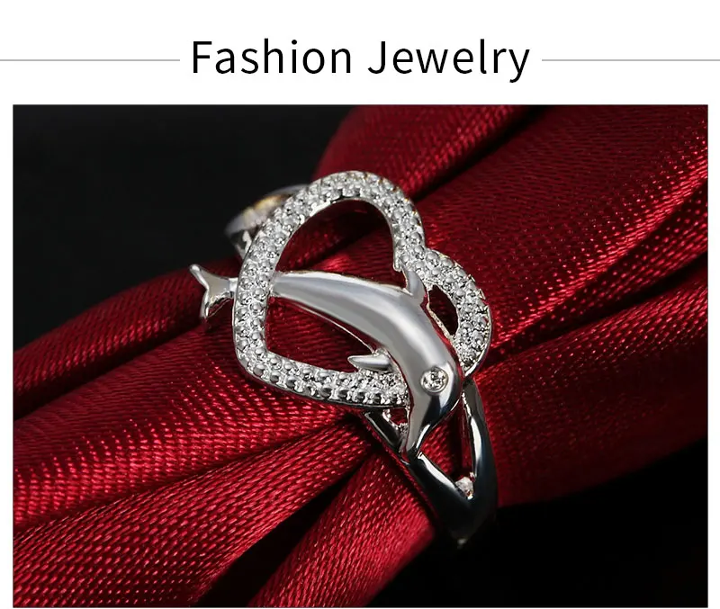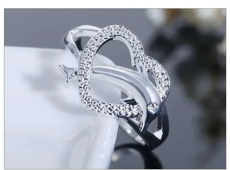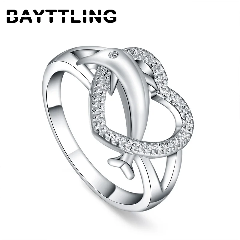 BAYTTLING AAA циркон серебряный цвет 7/8 # милое кольцо дельфина в форме сердца для женщин модные свадебные ювелирные изделия подарки