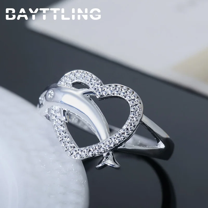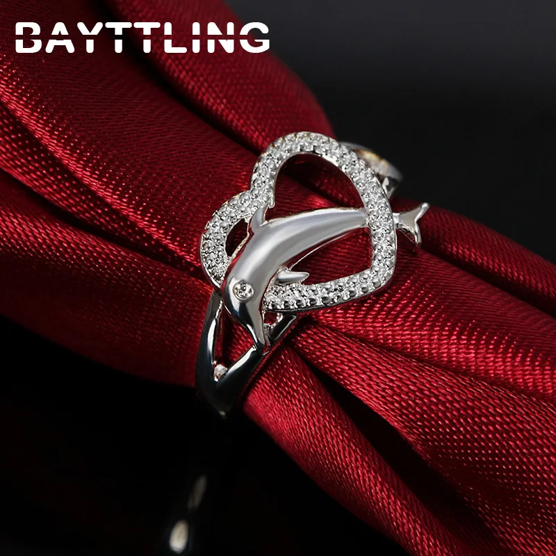 BAYTTLING циркониевое серебряное кольцо 78 # с милым дельфином в форме сердца для женщин модные свадебные украшения подарки