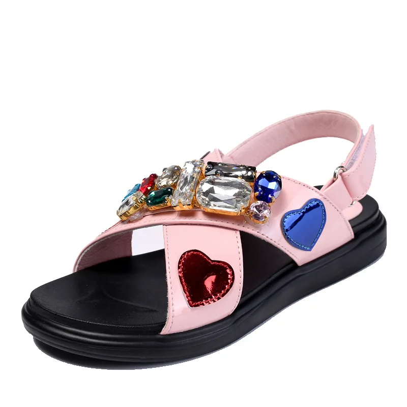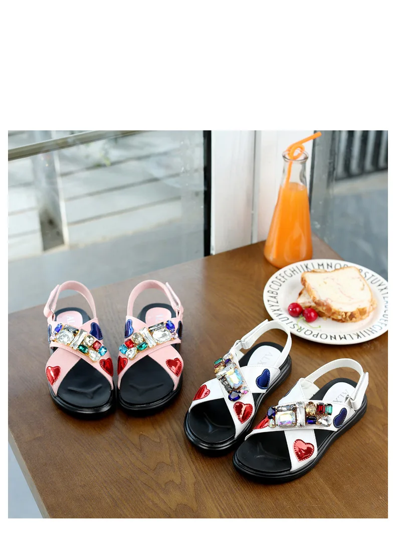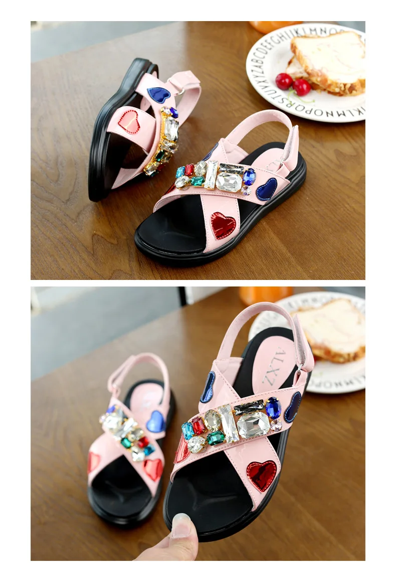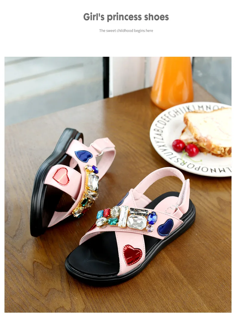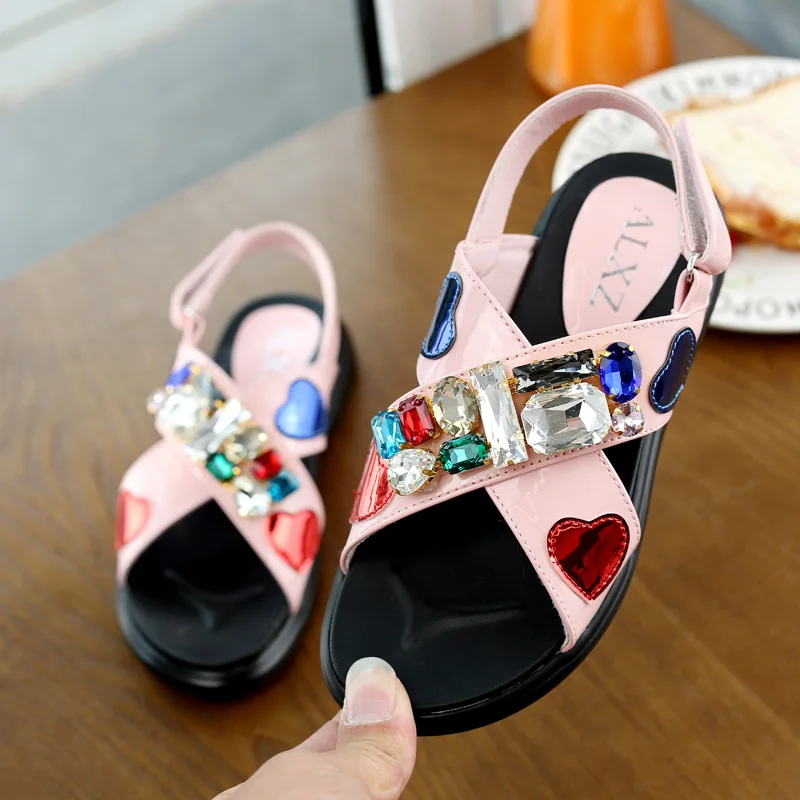Летние детские сандалии принцессы; Пляжные сандалии для маленьких девочек; Детская брендовая обувь со стразами; Модельные туфли из лакированной кожи; Модная 2021