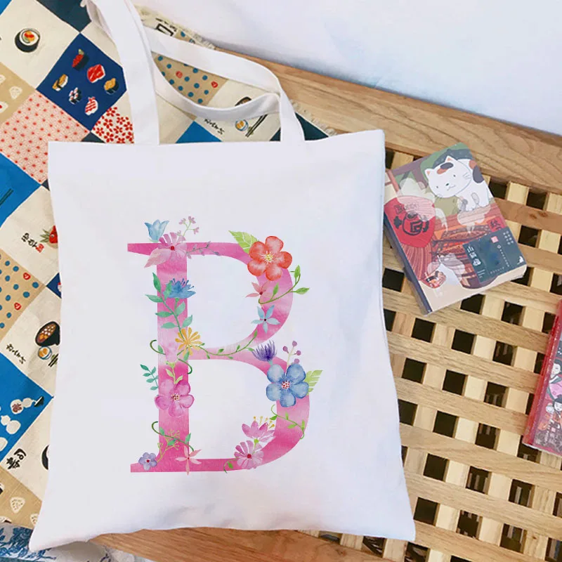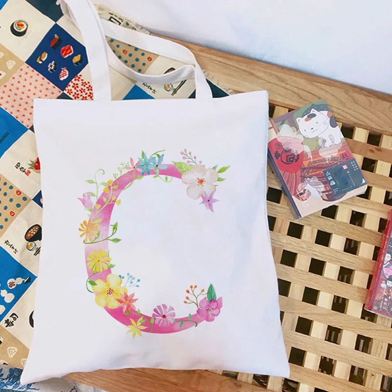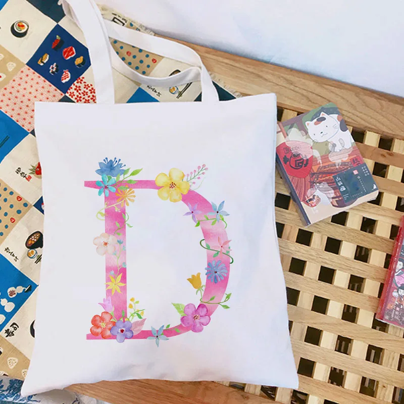 Холщовые сумки с цветочными буквами A, B, C, D, E, F, G, женская су...