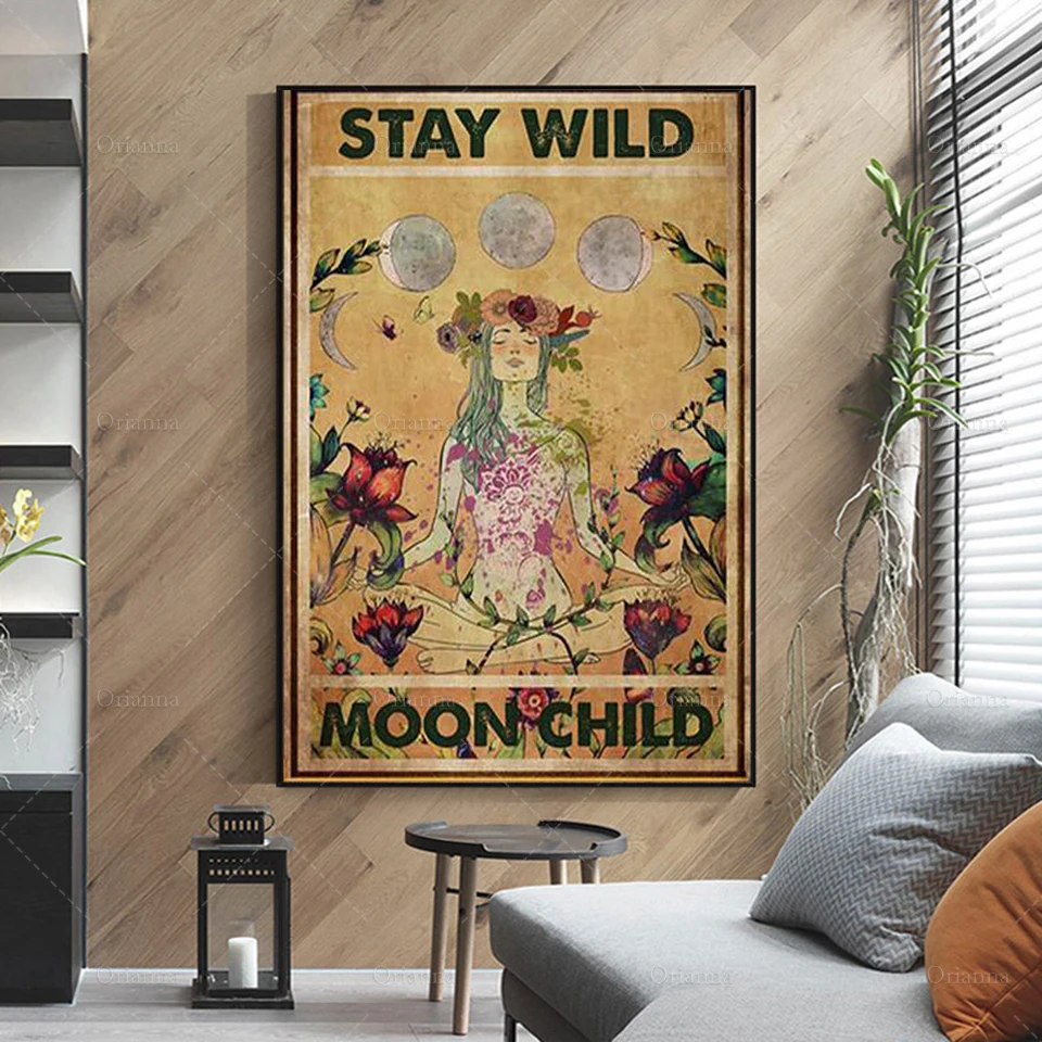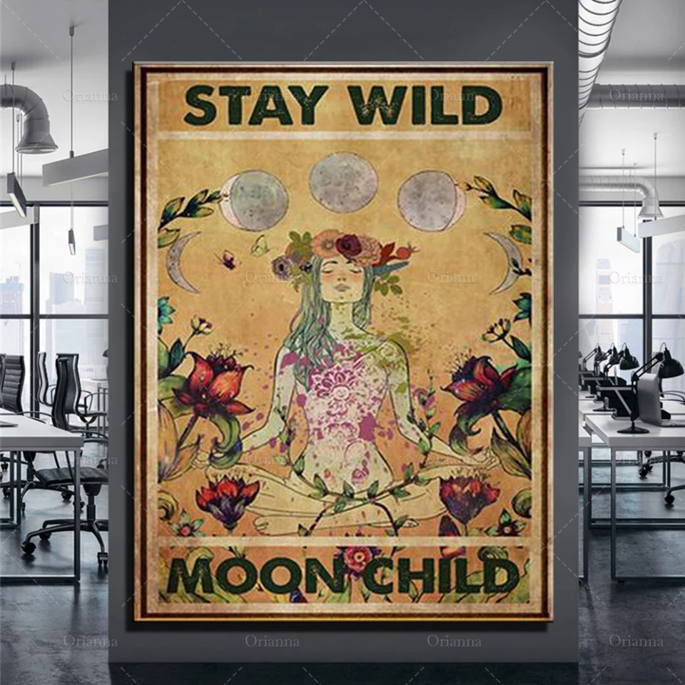 Ребенок медитации в стиле Бохо для маленьких девочек; Trippie Винтаж плакат, йога коврик в стиле хиппи девушка плакат Современное украшение для дома, украшение на стену, живопись маслом на холсте