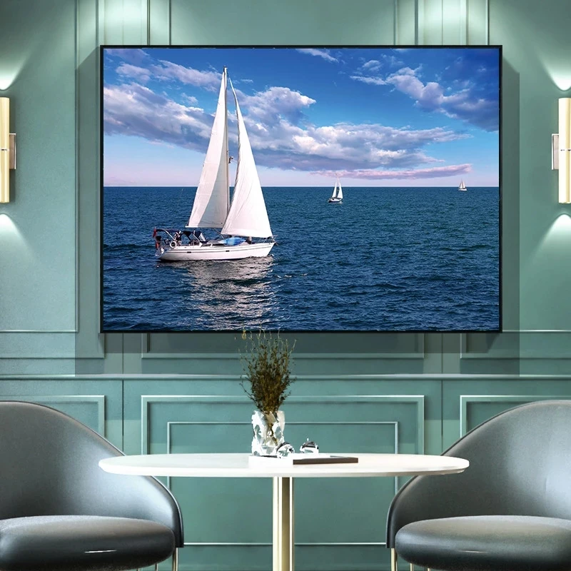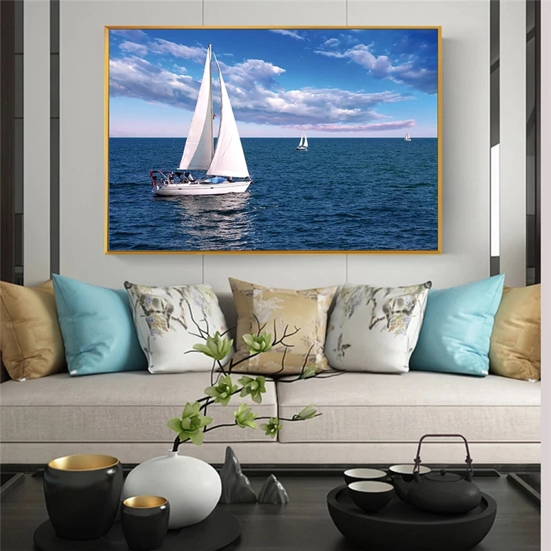 Современный стиль скандинавский синий океан парусная лодка Холст Картина постер Офис Гостиная Декор роспись (без рамки)