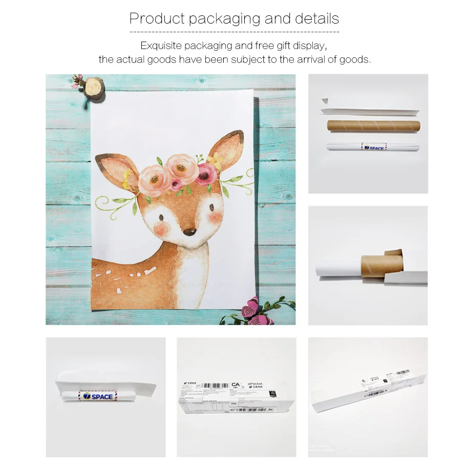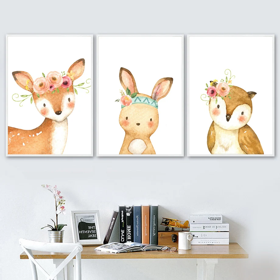 Олень енот, кролик, лиса, Детская стена, художественный принт, холс...