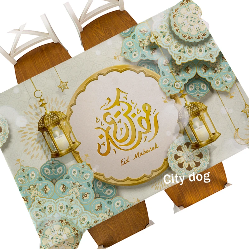 Мусульманская скатерть Eid Mubarak с принтом, водонепроницаемая прямоугольная хлопковая льняная молитвенная скатерть для обеденного стола, украшение Рамадан кареем