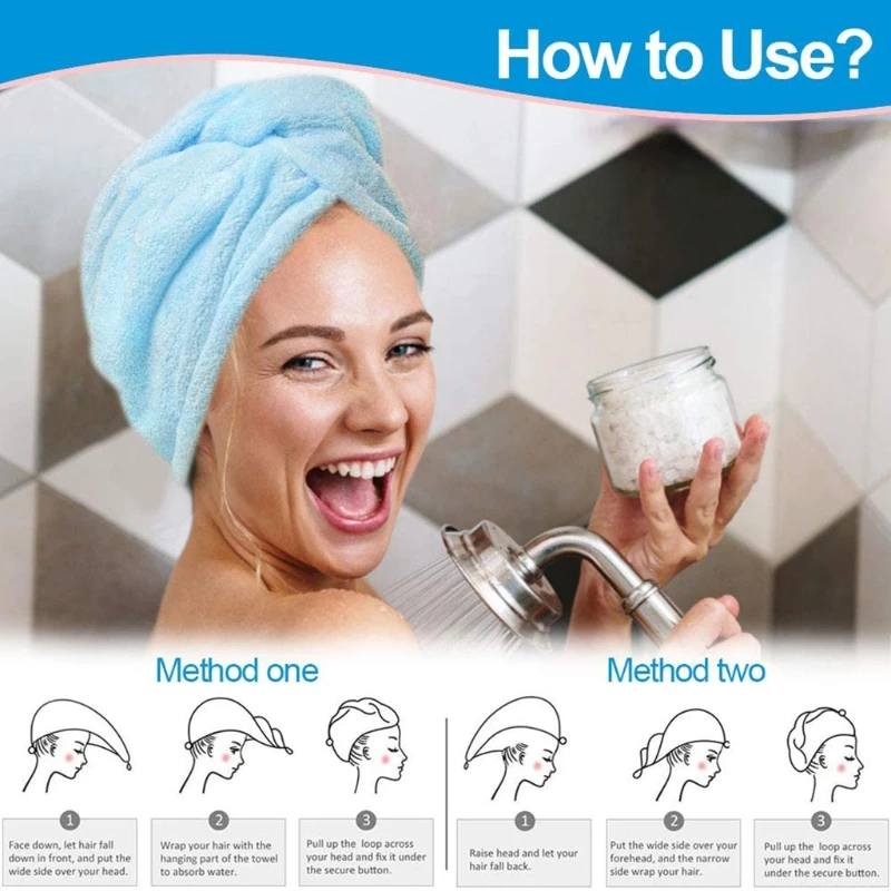 Высушите волосы быстрее:Полотенце для волос изготовлено из очень абсорбирующего хлопка.