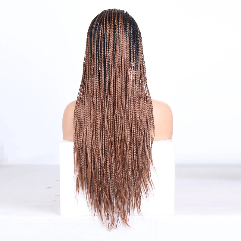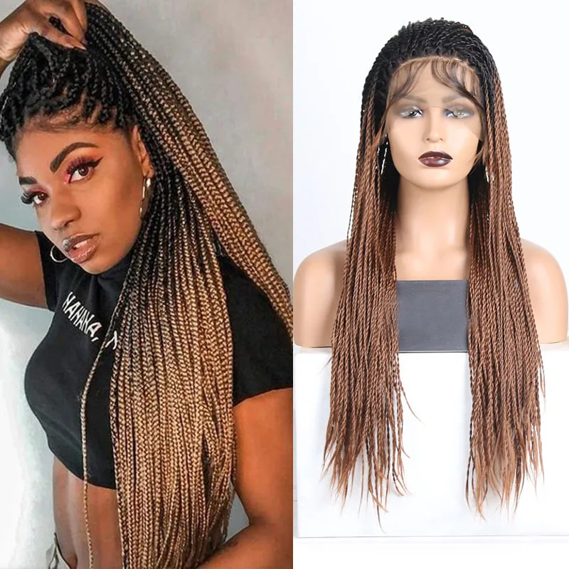 Парик на сетке спереди с эффектом омбре, Длинные Синтетические волосы, плетеные парики с коричневой коробкой для черных женщин, термостойкие волосы с плетением