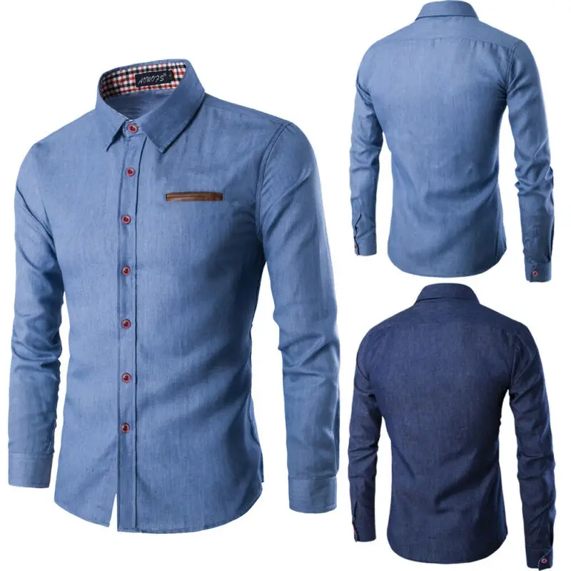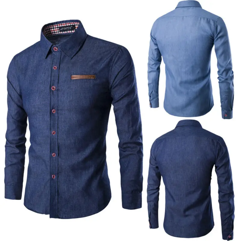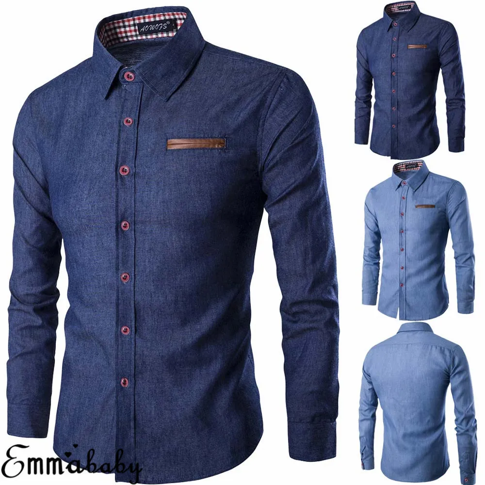 Рубашка мужская джинсовая с длинным рукавом, модная Повседневная блуза Slim Fit, стильная модная джинсовая одежда