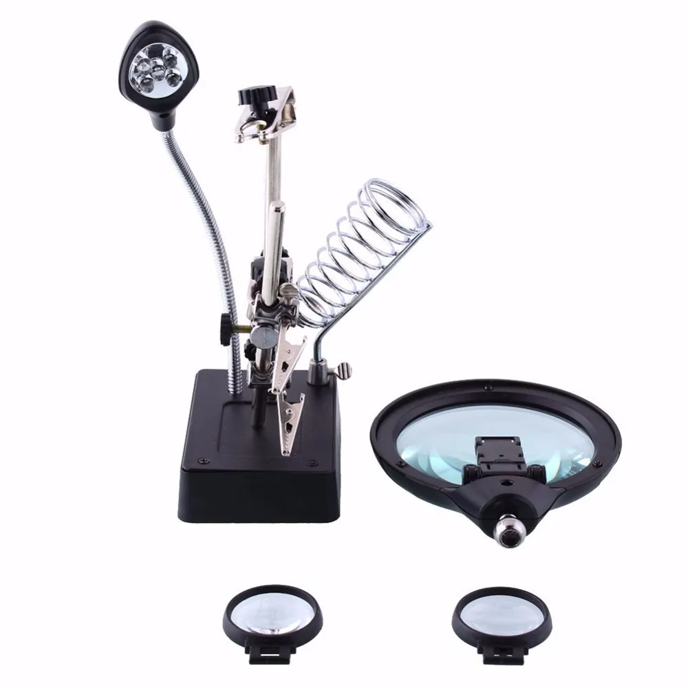 Увеличительное стекло для сварки, светодиодная лампа, вспомогательный кронштейн, увеличительное стекло 3 в 1, ручной инструмент для сварки и ремонта
