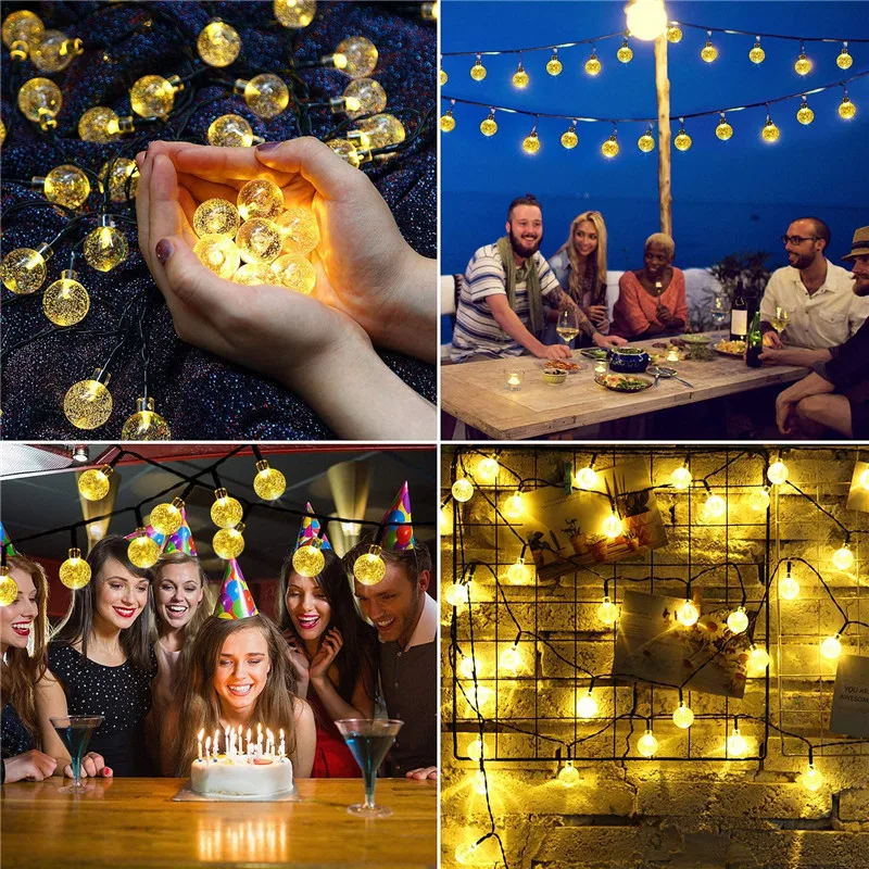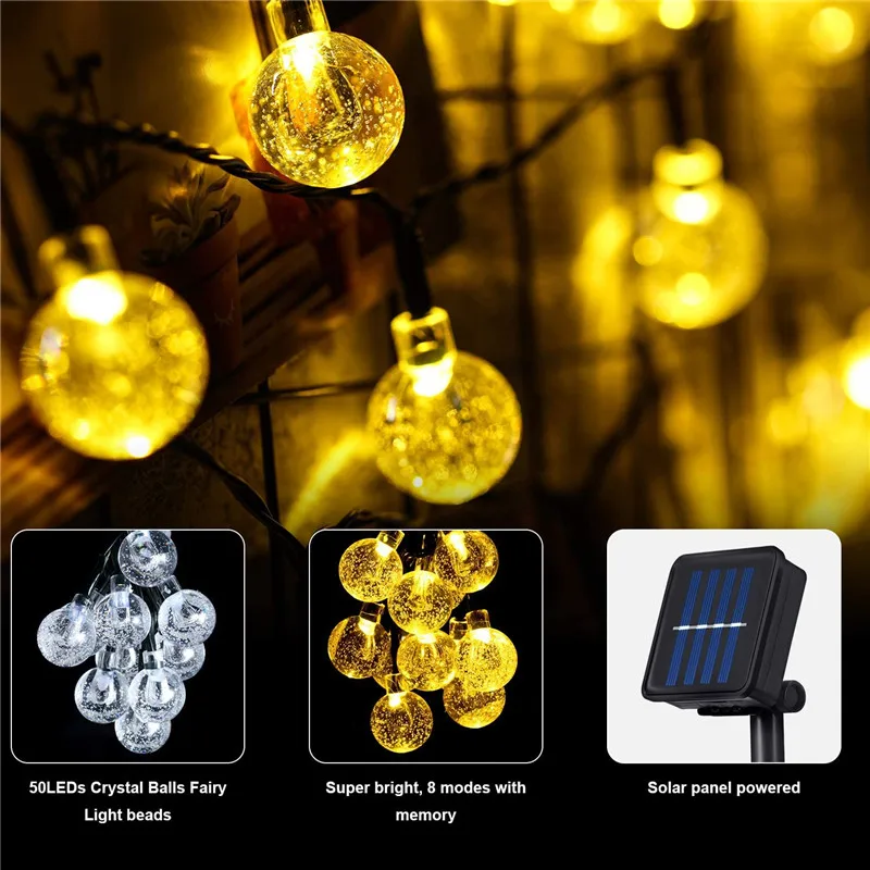 Водонепроницаемая уличная и комнатная Хрустальная лента с 50 светодиодами, 8 режимов работы, для дома, сада, свадьбы, Рождественское украшение на солнечной батарее
