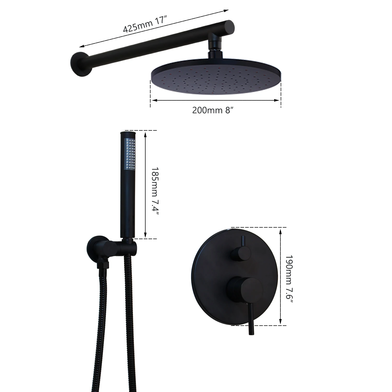 JIENI 8 дюймов матовый черный круглый осадков Ванная комната душевой кран настенный дождь смеситель для душа насадки для душа и ручной набор для душа