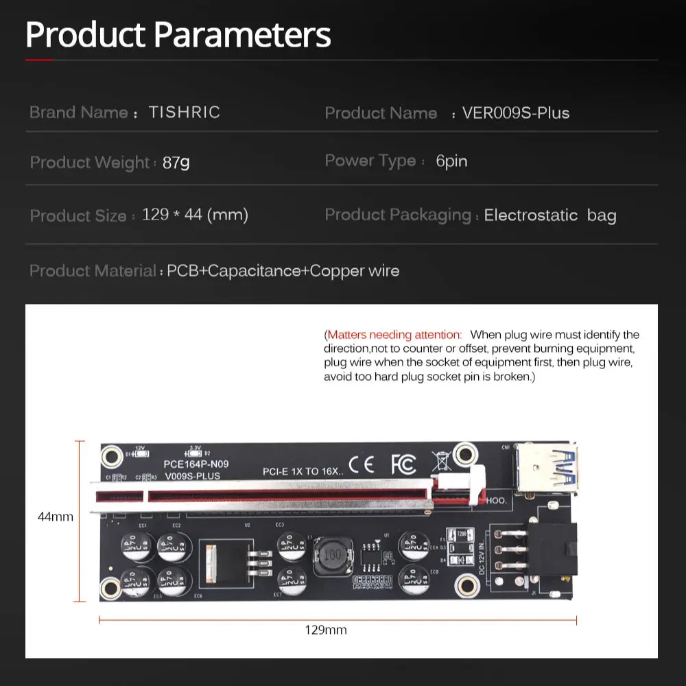 1-10 шт. TISHRIC новейший PCIE Riser 009s Plus Mining Super Version PCIE x16 PCI Express плата расширения для майнинга видеокарта