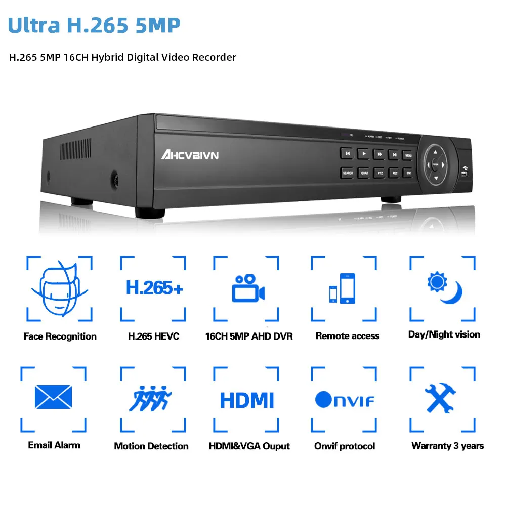 4CH 8CH /16CH AHD безопасности CCTV DVR H.264 5MP/4MP AHD CVI TVI аналоговый IP Camera5 5MP 4.0MP Гибридный видео рекордер HD видео выход