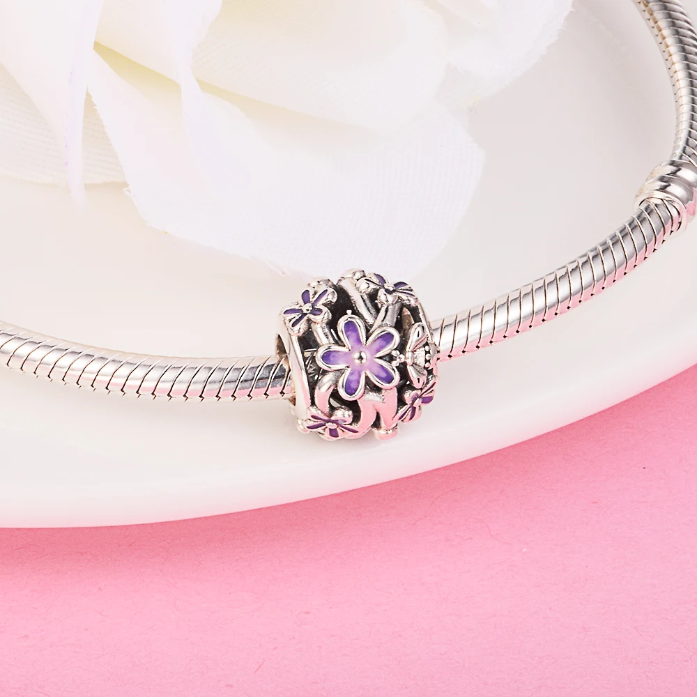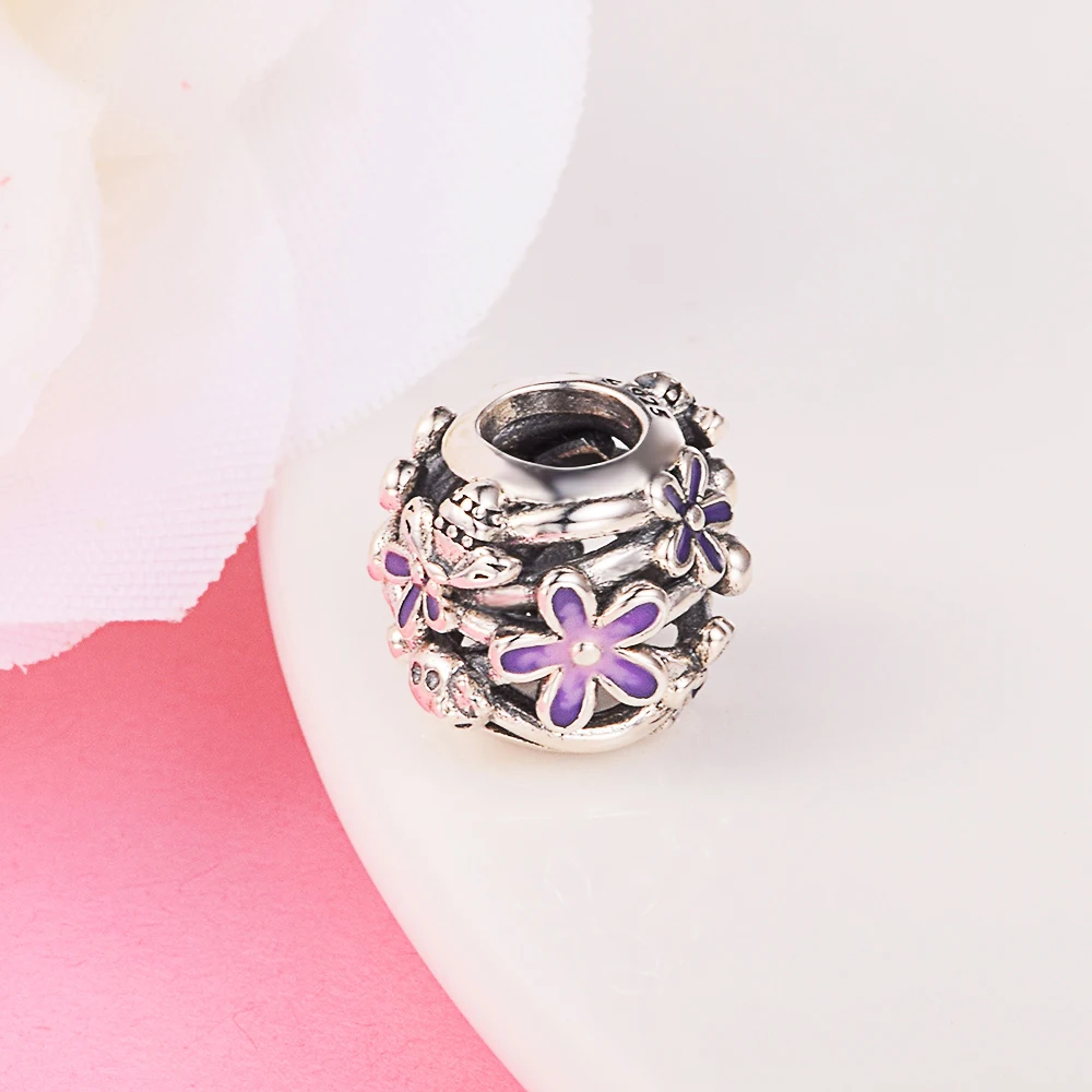 Новый ажурный фиолетовый цветок Шарм оригинальные Стерлинговое Серебро садовые шармы Бусина Подходит Для браслета Пандоры женские украшения DIY Изготовление Krale