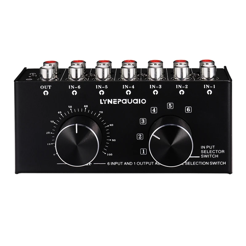 6 входов 1 выходной коммутатор выбор источника аудио переключатель RCA аудио входной сигнал переключатель с регулировкой громкости и Manu