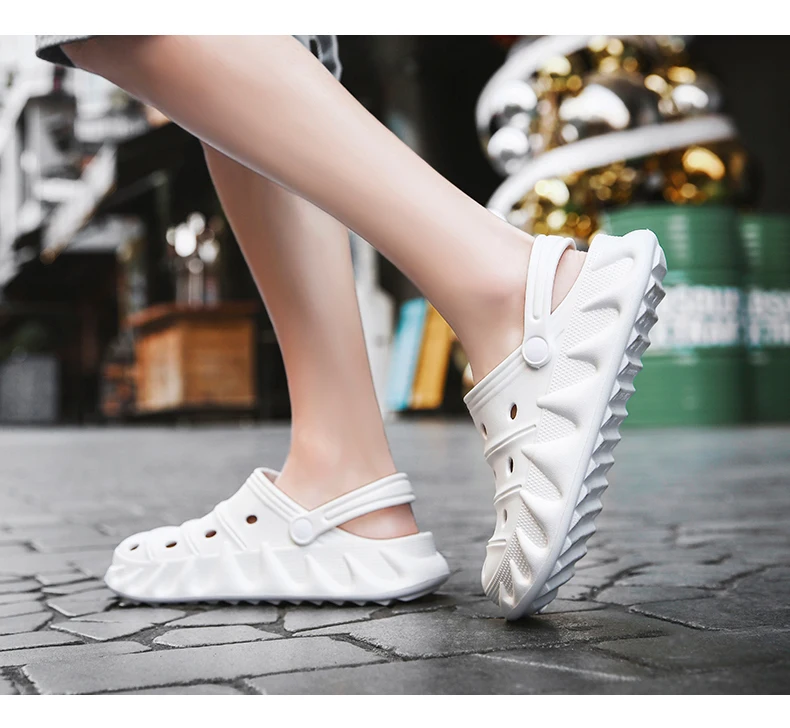 Сандалии на платформе для мужчин и женщин, повседневные шлепанцы с перфорацией, без застежки, плоская подошва, пляжные тапочки, лето 2021