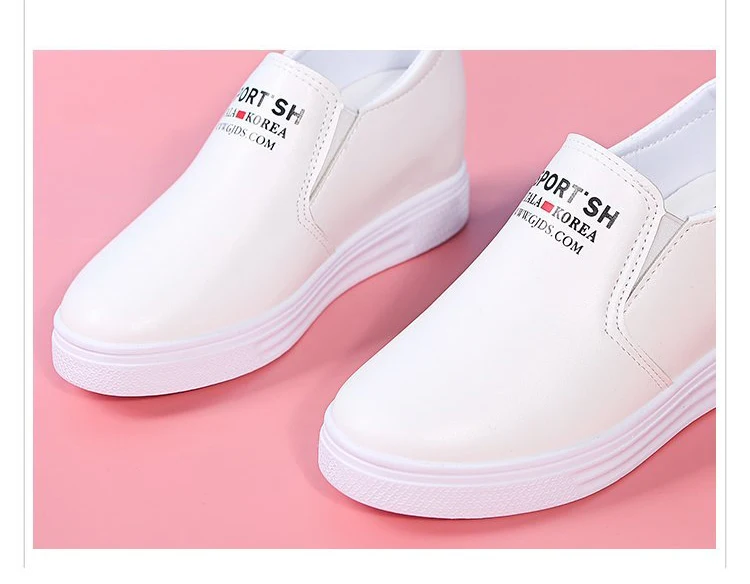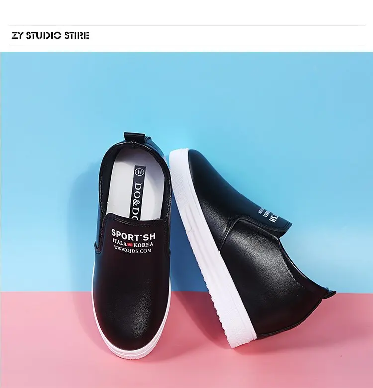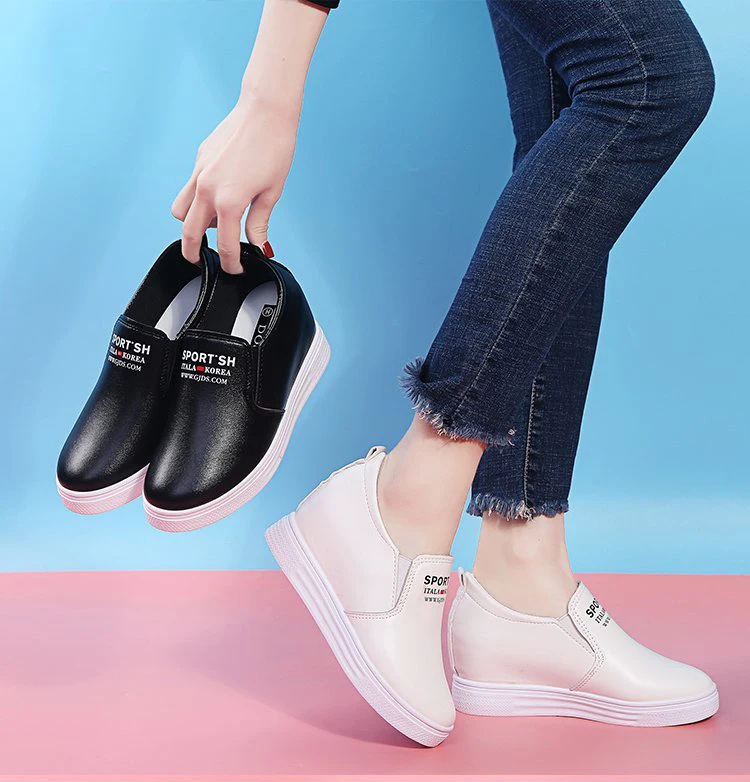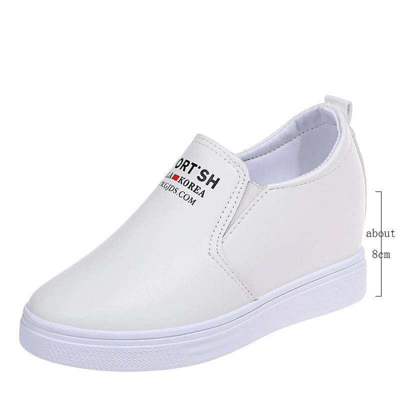 Кроссовки женские белые из искусственной кожи, модные лоферы, увеличивающие рост, повседневные Черные кроссовки на танкетке с круглым носком