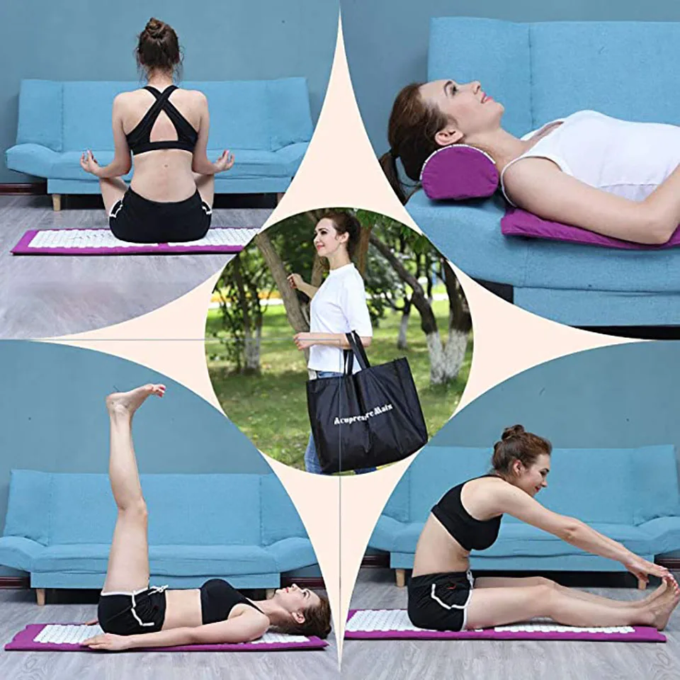 Что такое акупрессуровый Мат? Состоит из тонкого коврика, покрытого шипами из АБС-пластика. Он вдохновлен древними индийскими традициями исцеления, которые, как считается, были вокруг в течение тысяч лет. Тысячи шипов, которые были стратегически размещены на коврике и подушке, безвредны для кожи и обеспечат вашему телу целебные преимущества. Как это работает? Акупрессуровый коврик является идеальным помощником для самостоятельного лечения. Он работает таким же образом, как акупунктура, обеспечивая релиз эндорфинов вашего тела, которые обладают способностью производить анальгезию и ощущение самочувствия. Многие люди имеют различные реакции на это, которые могут включать в себя: счастье, ясный ум, больше энергии и расслабление. При регулярном использовании в течение достаточно длительного периода времени набор для акупрессуры может:-повысить уровень энергии-улучшить кровообращение-уменьшить стресс-облегчить боль в шее и спине-уменьшить кровяное давление-облегчить головные боли-улучшить сон. Как использовать? Поместите коврик на землю с шипами, указывающими вверх. Ложитесь на коврик. Коврик позволит Вам ориентироваться на изогнутые области, такие как шея, поясница и даже ноги. Предпочтительно делать это ежедневно в течение 10-30 минут одновременно или при желании. Для начинающих может быть лучше начать в течение более короткого периода времени и/или носить рубашку или поместить тонкую ткань между шипами и вашей кожей. Характеристики: Название: массажный коврик Материал: композитный материал Цвет: как на изображении Тип А: Размер подушки: 36*15*10 см Размер мата: 68*42*2 см Тип B: Размер подушки: 38*15*10 см Размер коврика: 120*42*2 см Посылка включает в себя: Массажная подушка, комплект из двух предметов/массажная подушка, комплект из трех предметов (вы можете выбрать желаемый, спасибо)