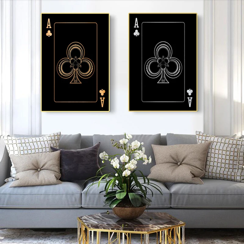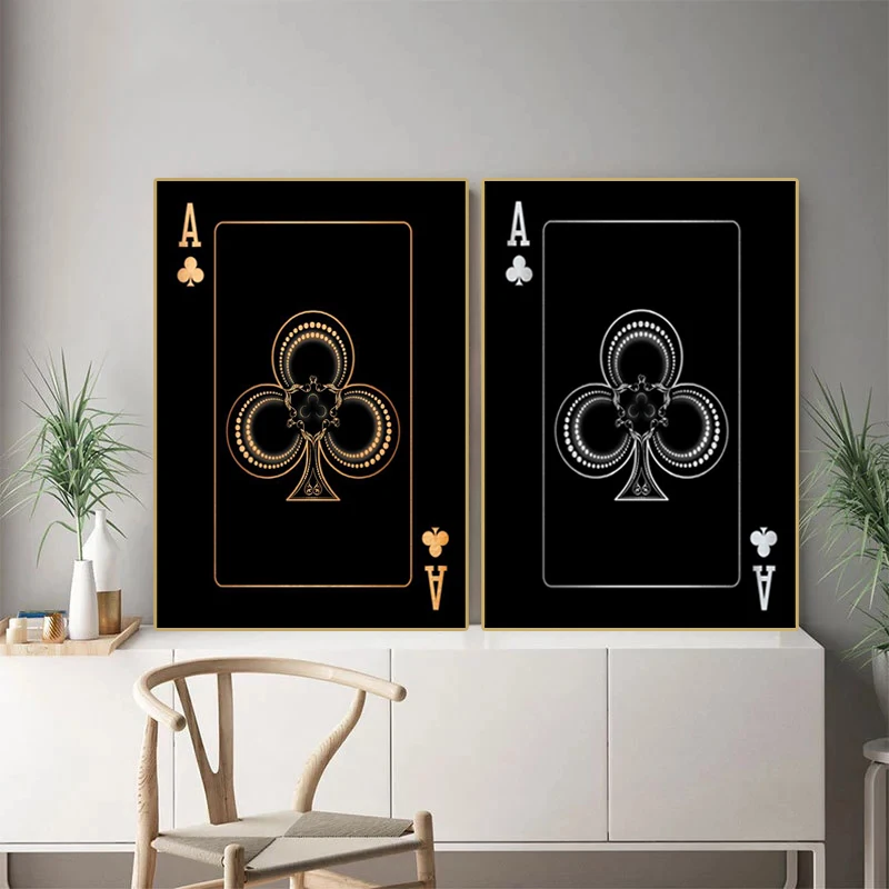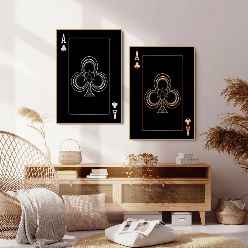 Абстрактные настенные художественные плакаты, принты золотого и серебряного цвета, Картина на холсте с изображением Тузы клуба, бара, ресторана, украшение на стену