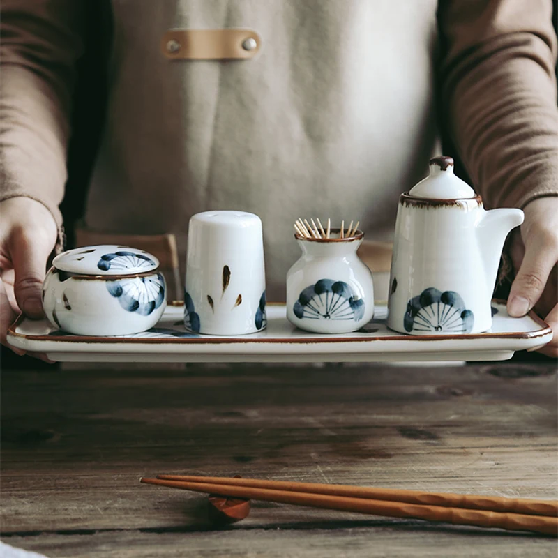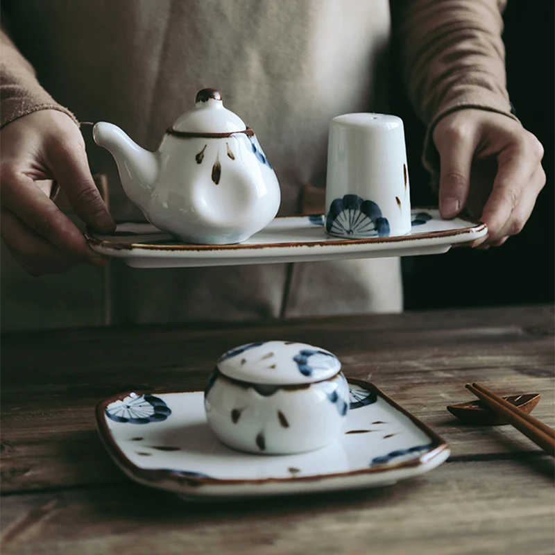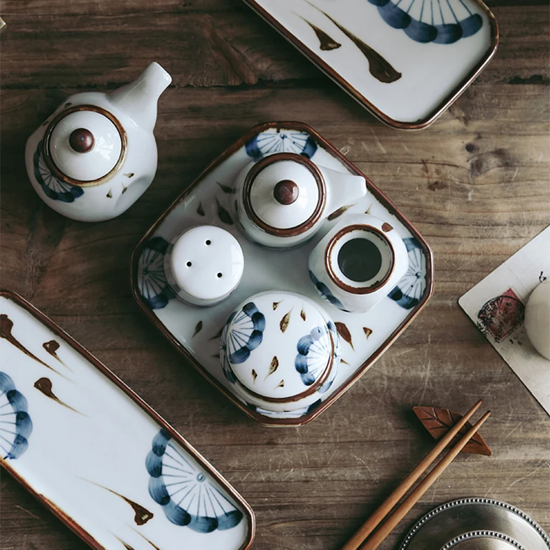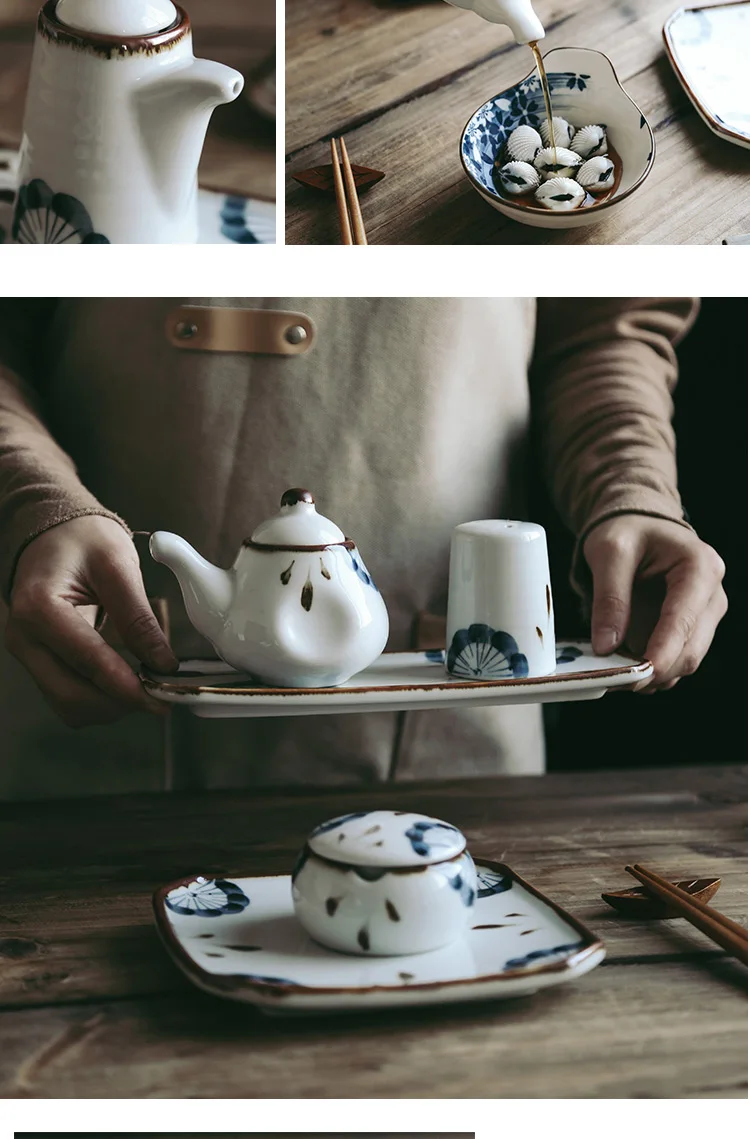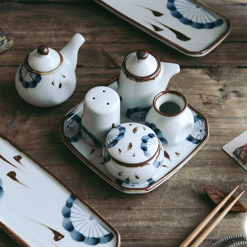RHE Керамика масло уксус соус горшок дозатор соль и перец шейкеры набор специй соевый соус бутылки для специй кухонная утварь