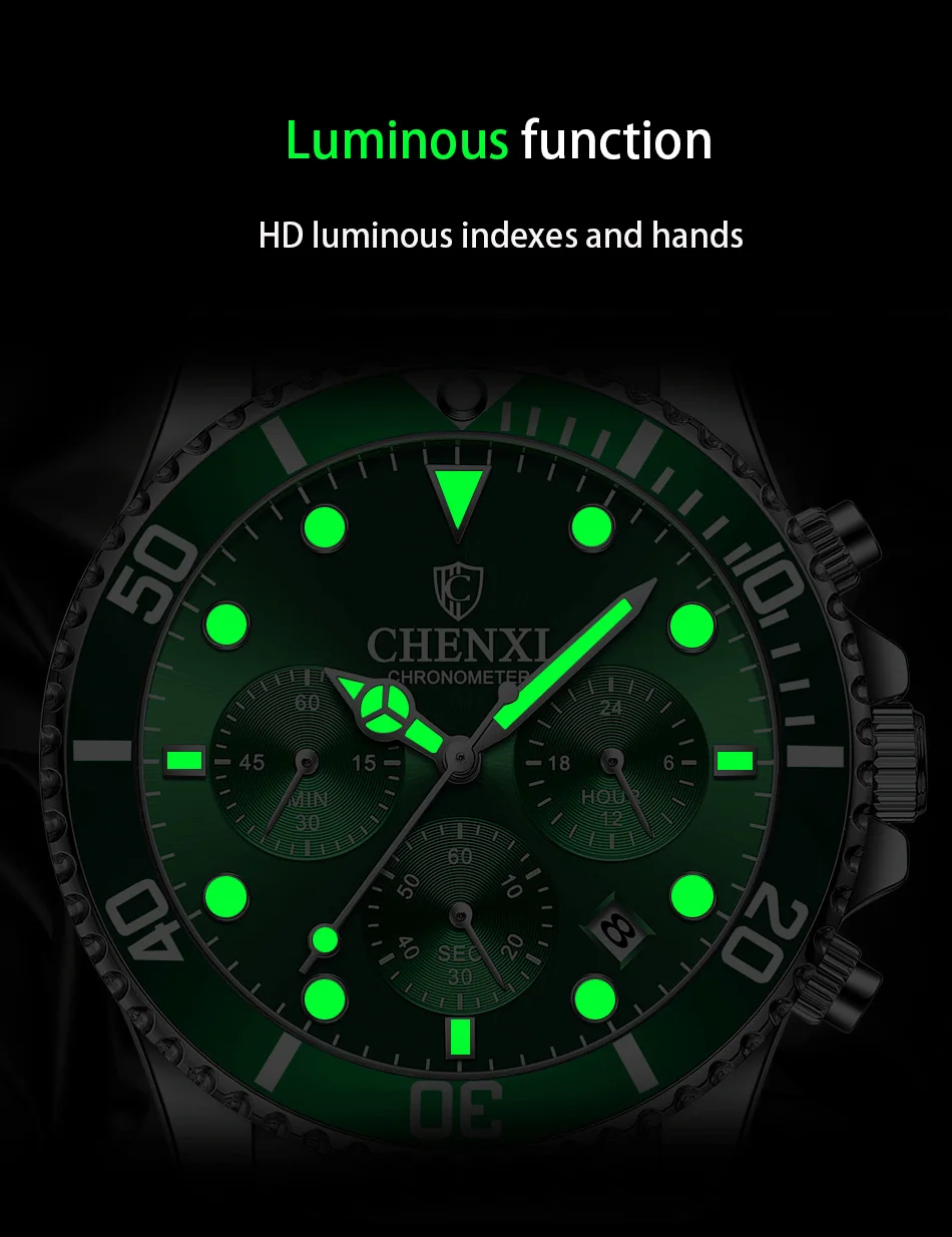 Классические роскошные мужские часы с хронографом, черные, серебристые, из нержавеющей стали, деловые повседневные кварцевые наручные часы ведущего бренда CHENXI