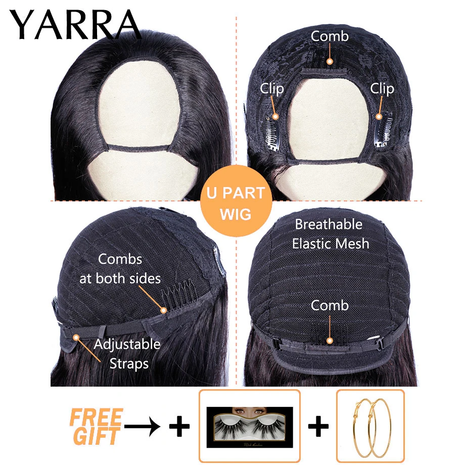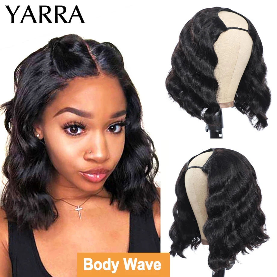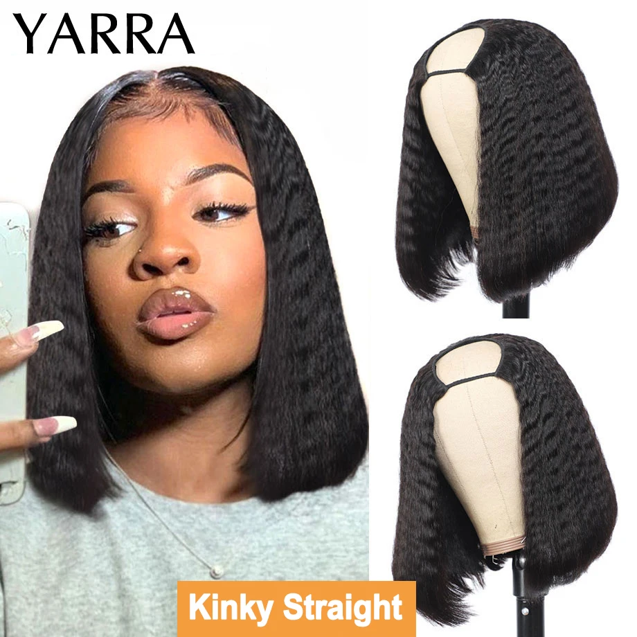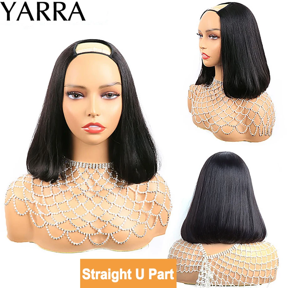 U-образный парик Боб, прямые человеческие волосы без клея, бразильские волосы, прямые U-образные волосы, парик из человеческих волос с клипсами, легко перемещается 180% Yarra