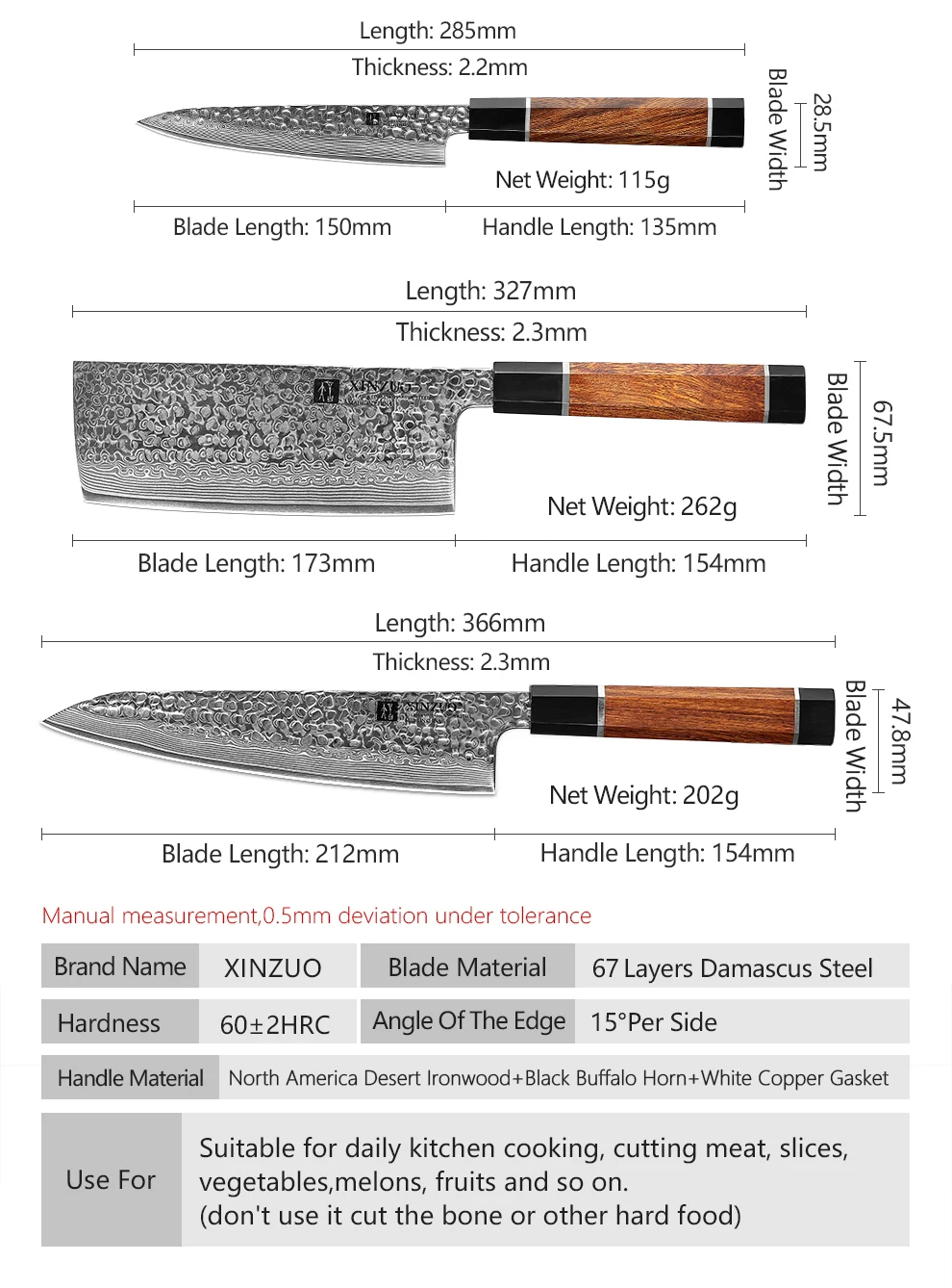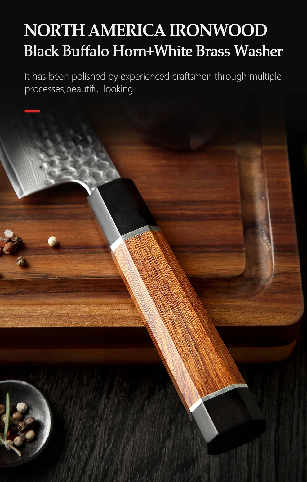 Материал ручки:Высокое качество Северная Америка пустыня железная древесина + черный рог буйвола + белая медная прокладка