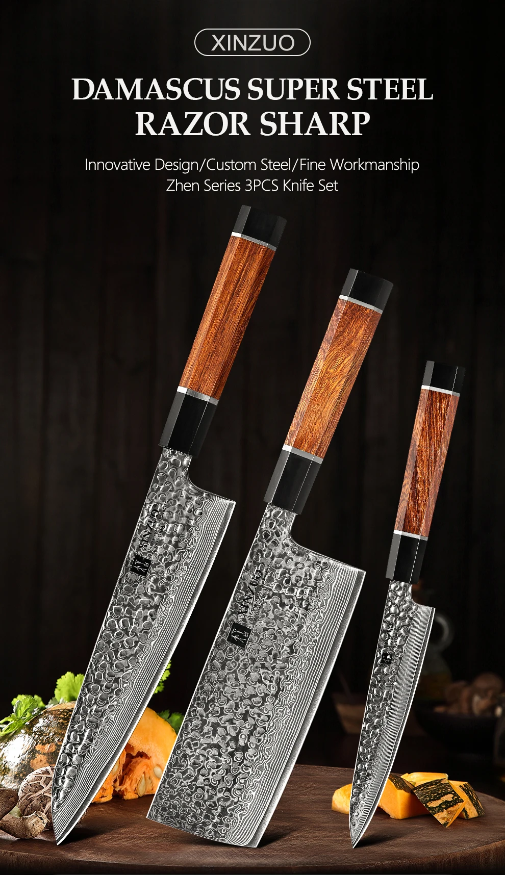 XINZUO Zhen Серия 3 шт дамасский стальной набор ножей