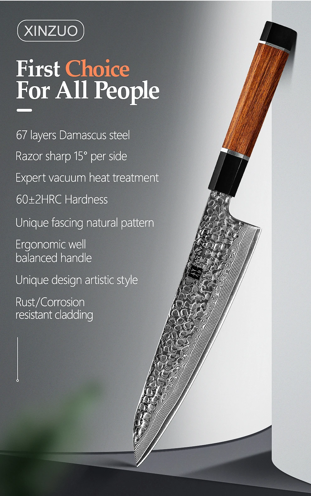 Профессиональный нож шеф-повара XINZUO из дамасской стали 8,2 дюйма...