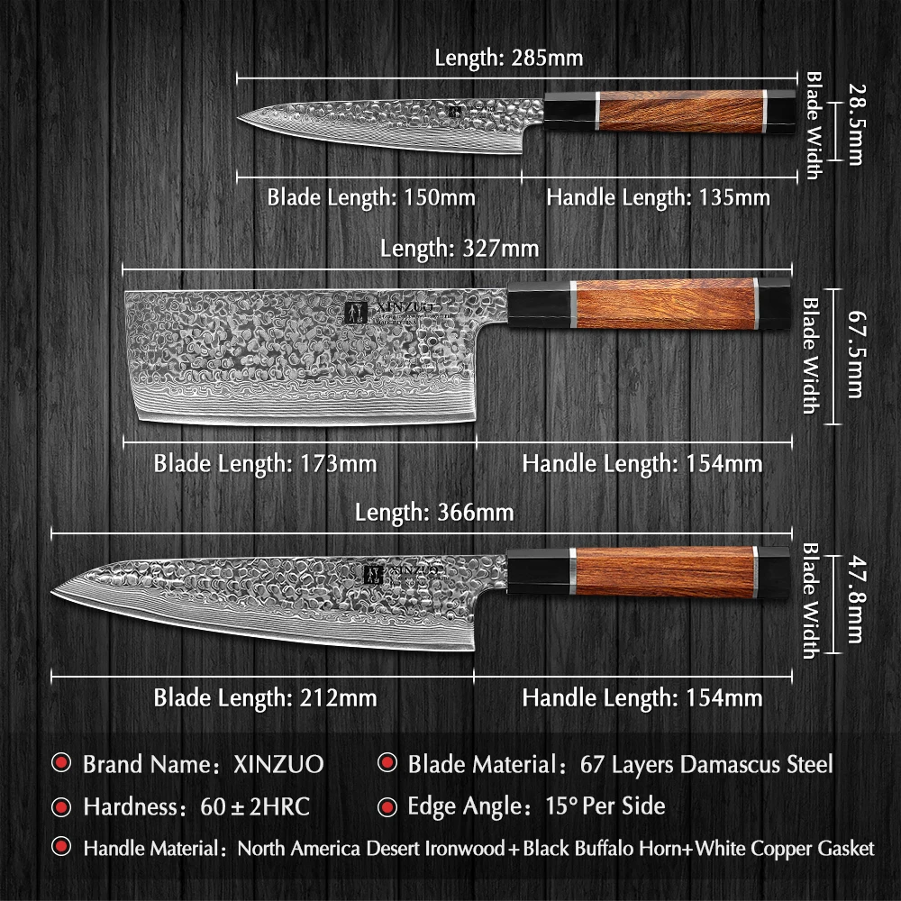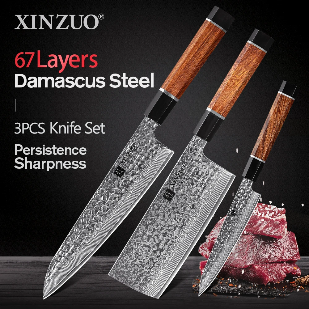 XINZUO три Кухня набор ножей из дамасской стали Сталь шеф-повар Кливер мясо Многофункциональный кухонный нож Кухня нож Пособия по кулинарии инструменты с пустыни из древесины крепкой породы ручка