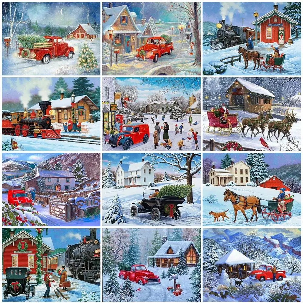Алмазная вышивка 5D "сделай сам", автомобиль, пейзаж, набор для рукоделия, домашний декор, подарок, бриллиантовый рисунок Рождество