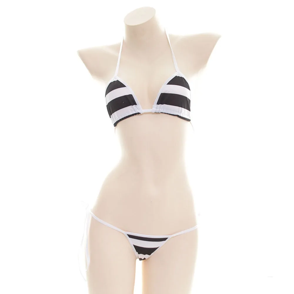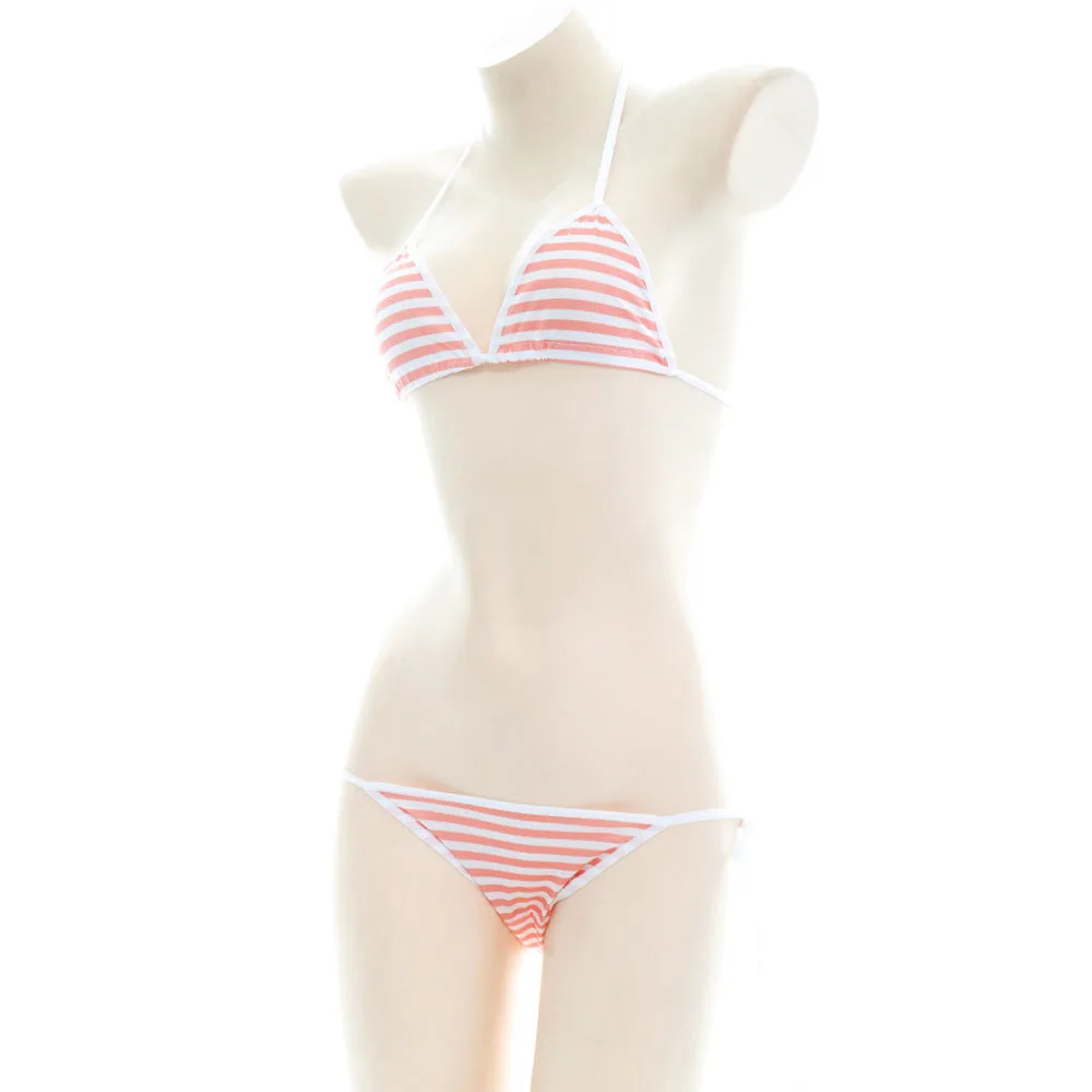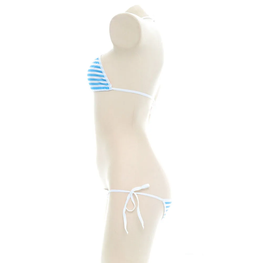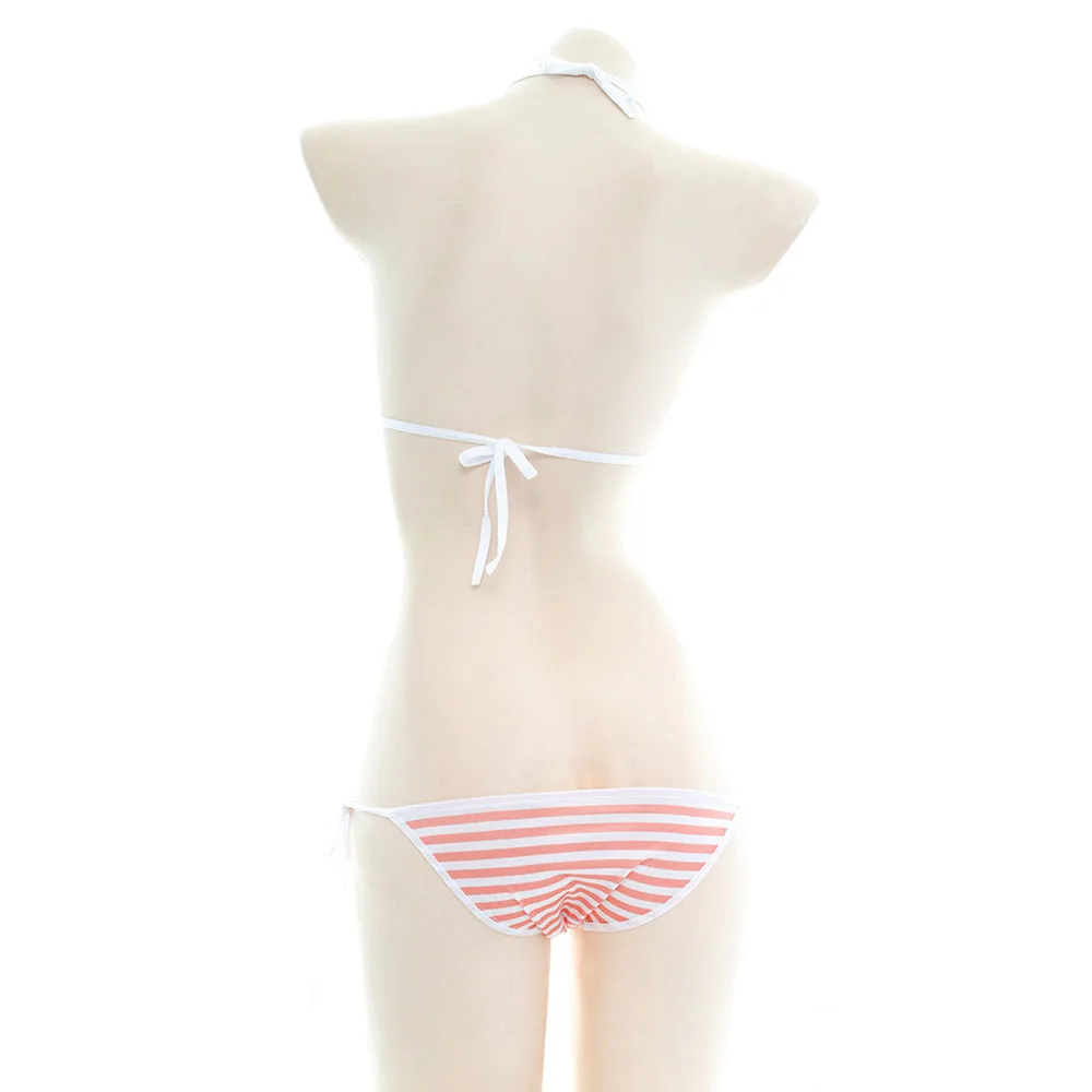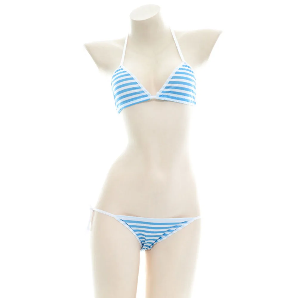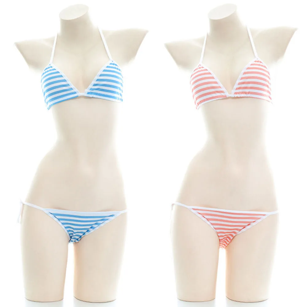 Японское аниме сексуальное нижнее белье косплей милые Лолита Kawaii синий розовый белый полосатый мини бикини эротические костюмы бюстгальтер женское нижнее белье
