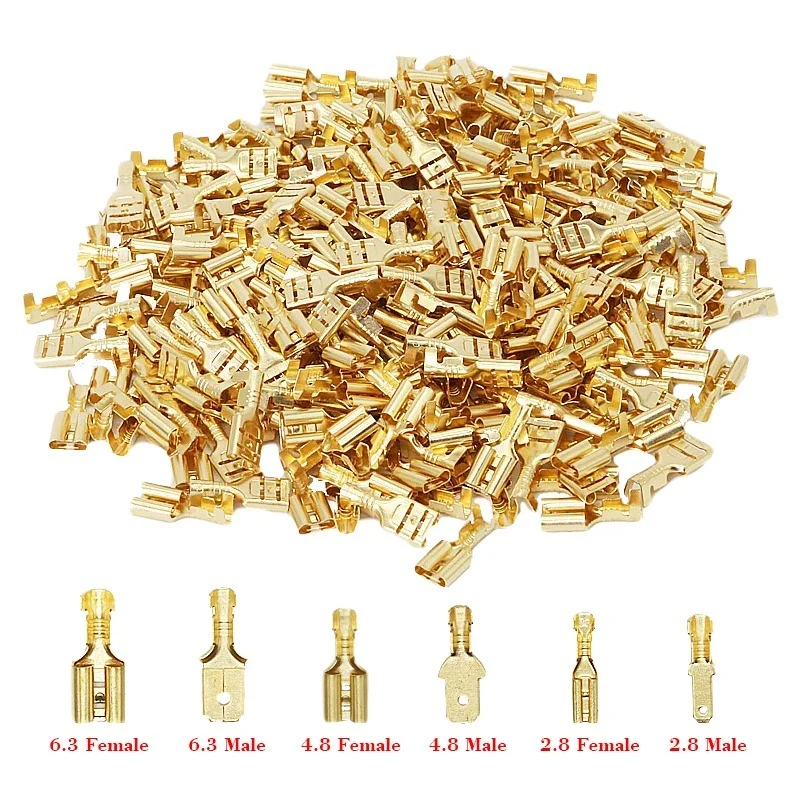100 шт., гнездовой и Мужской обжимной коннектор 2,84,86,3 мм, Золотая латуньсеребро, Автомобильные колонки, электрические изолированные коннекторы для проводов