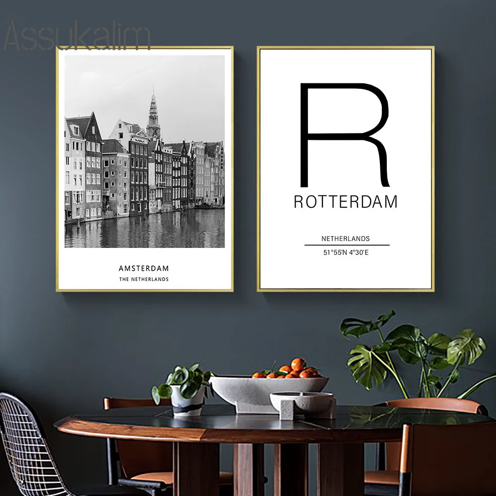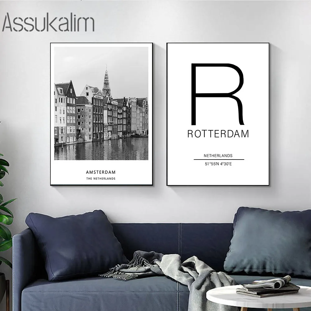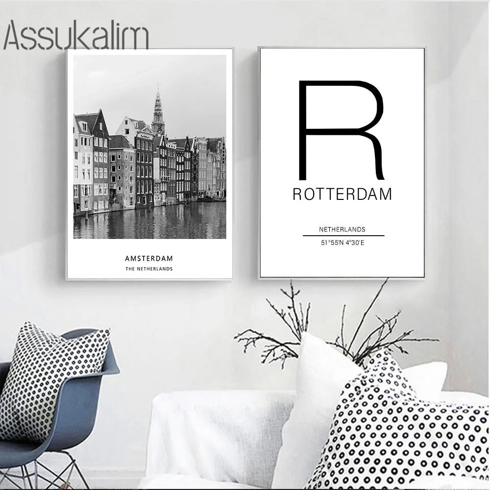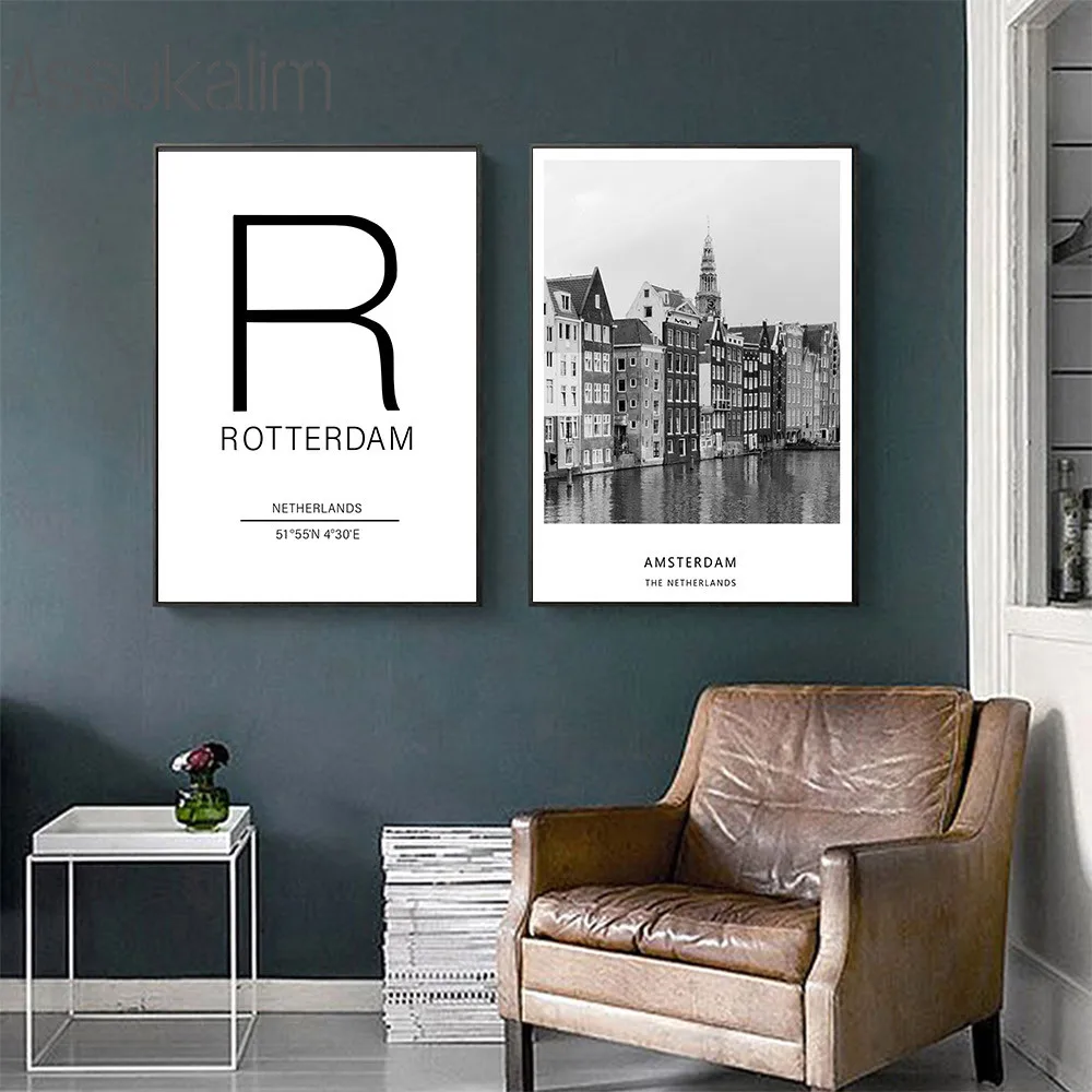Плакаты с изображением города Амстердам, плакаты с широтой и долготой, черные и белые плакаты с цитатами, современные настенные украшения