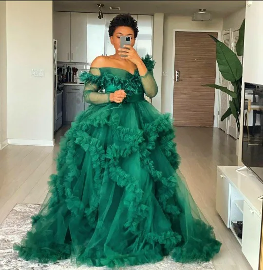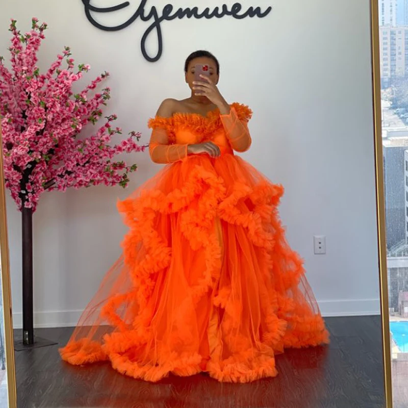 Длинные многоярусные платья с оборками для выпускного вечера, шикар...