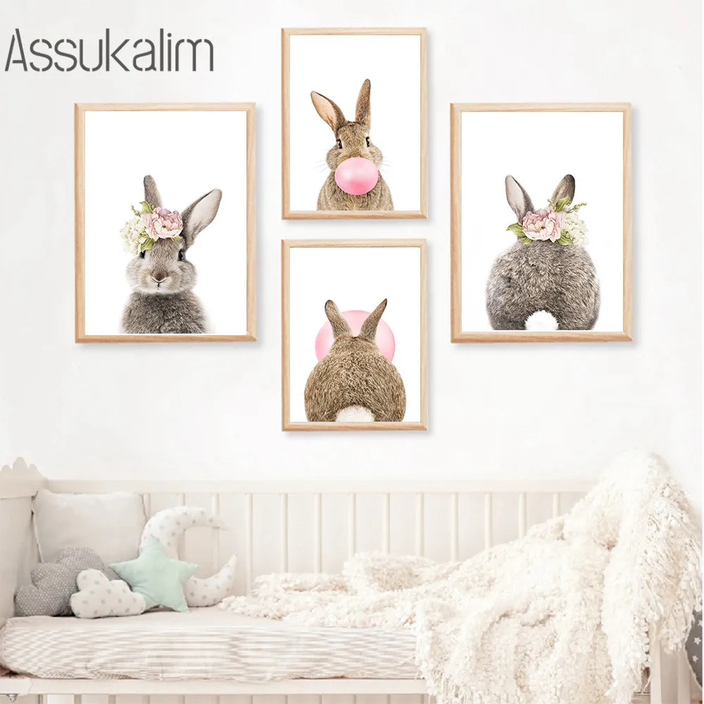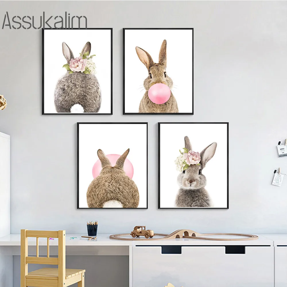 Постер с изображением кролика на заказ, Картина на холсте для детск...