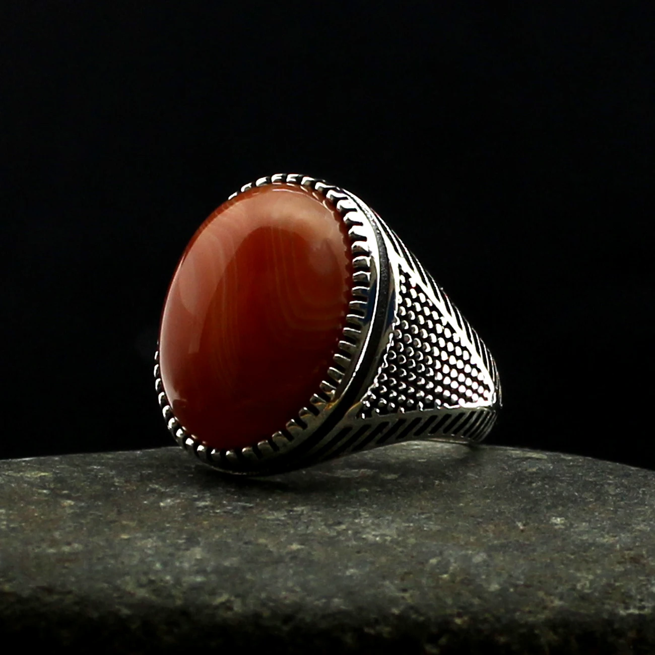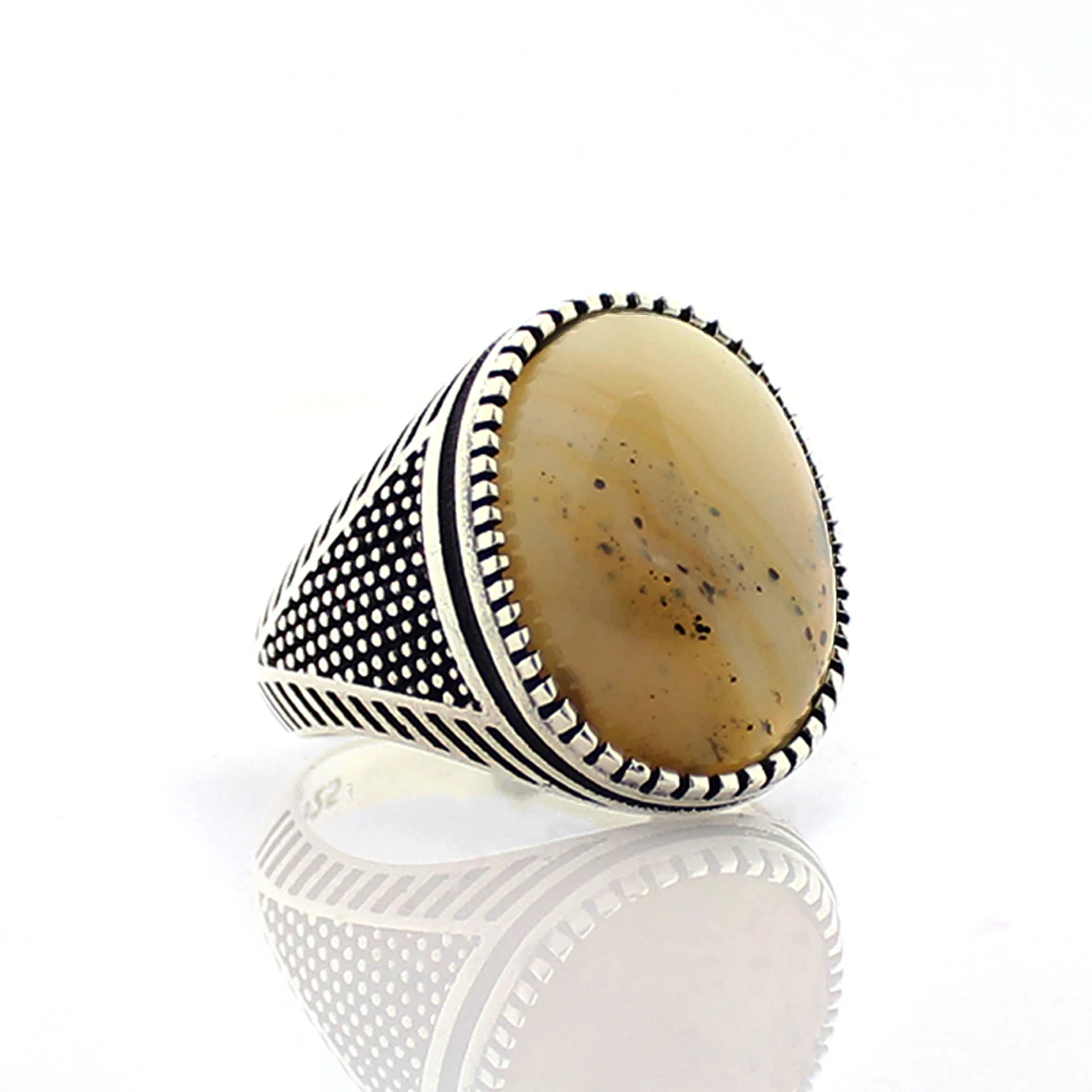 Кольцо из чистого серебра 925 пробы с натуральным камнем для мужчин...