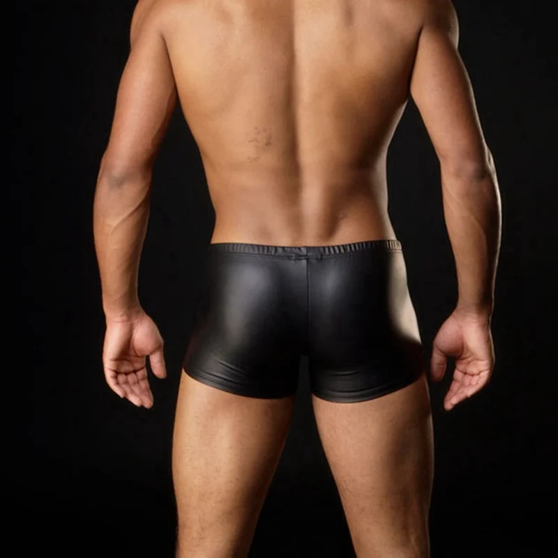 Сексуальные мужские PU кожаные шорты-боксеры шорты; Украшение в виде металлического кольца, легкие, с мешочком для пениса, хит продаж, модное гей эротические дуга нижнее белье
